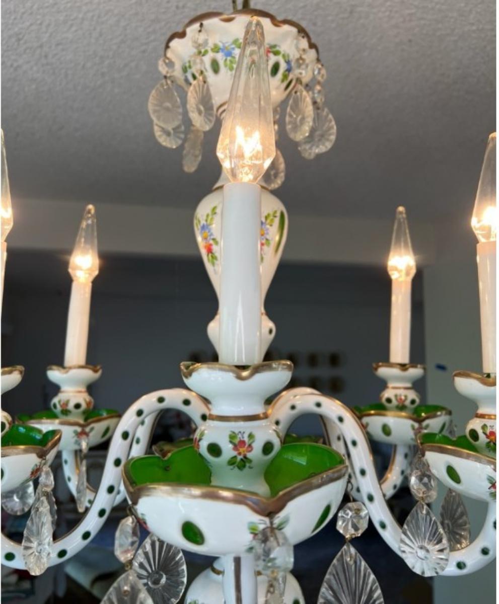 1. Elegant Vintage Italian Porcelain Chandelier Hand-Painted Florals Crystal Drops-Tested and Works