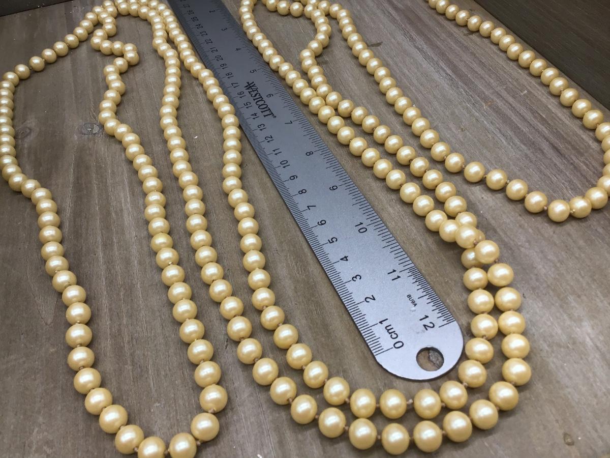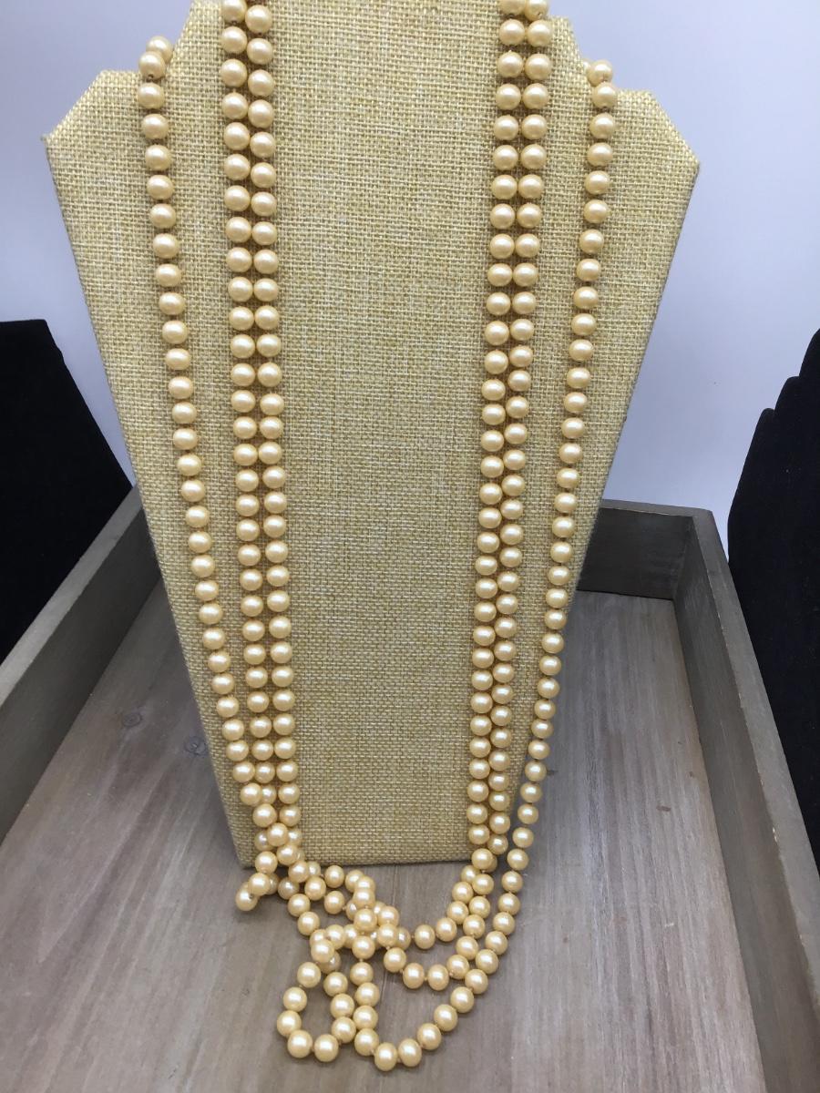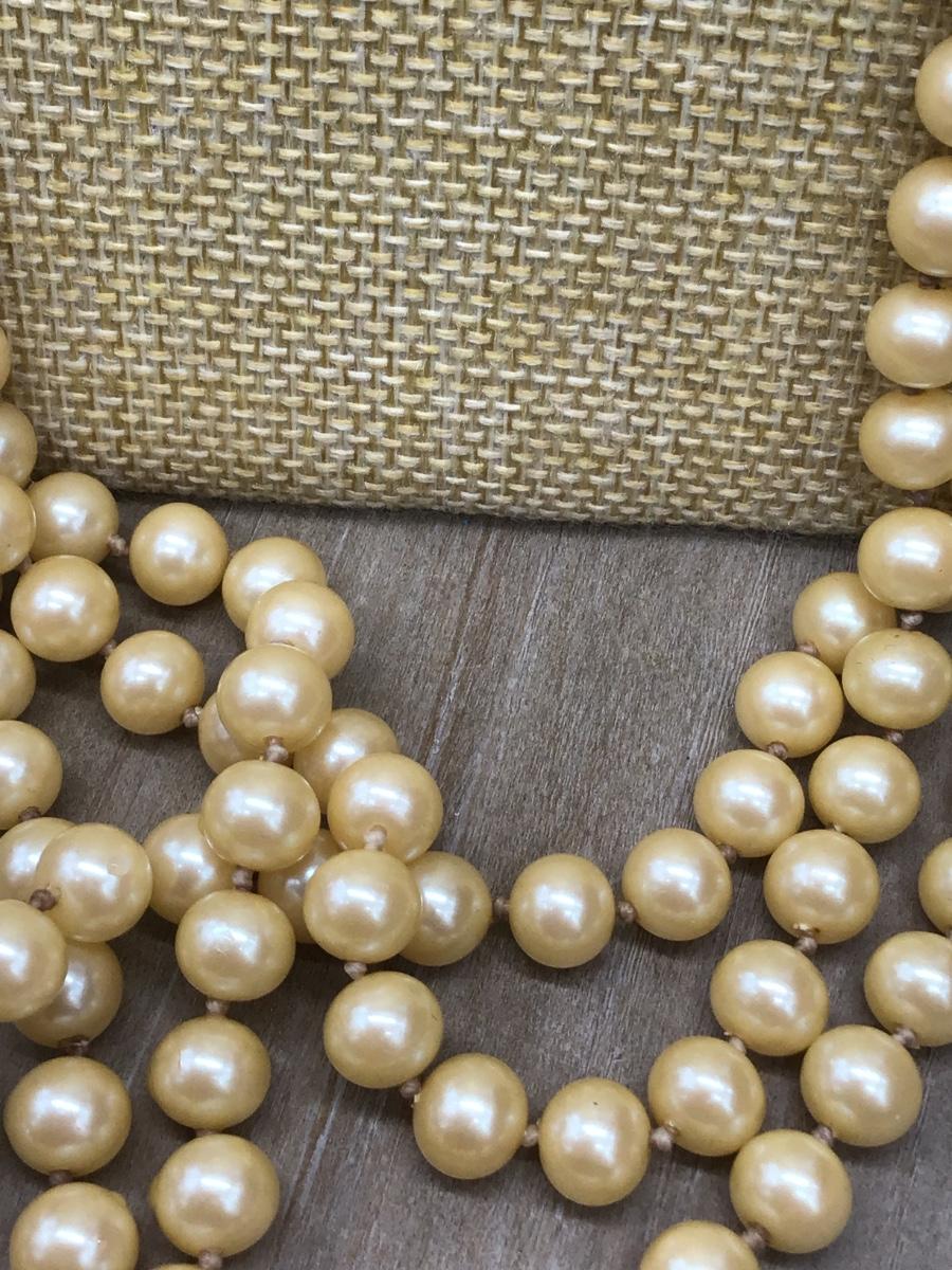 ELEGANT VINTAGE knotted NECKLACE FAUX PEARLS LOVELY GOLD TONE LUSTRE 60" LONG