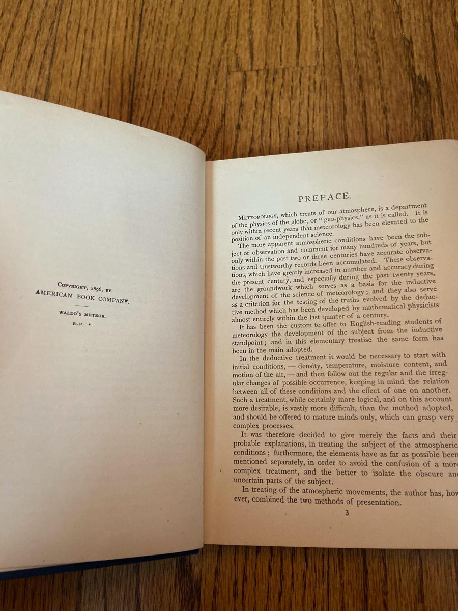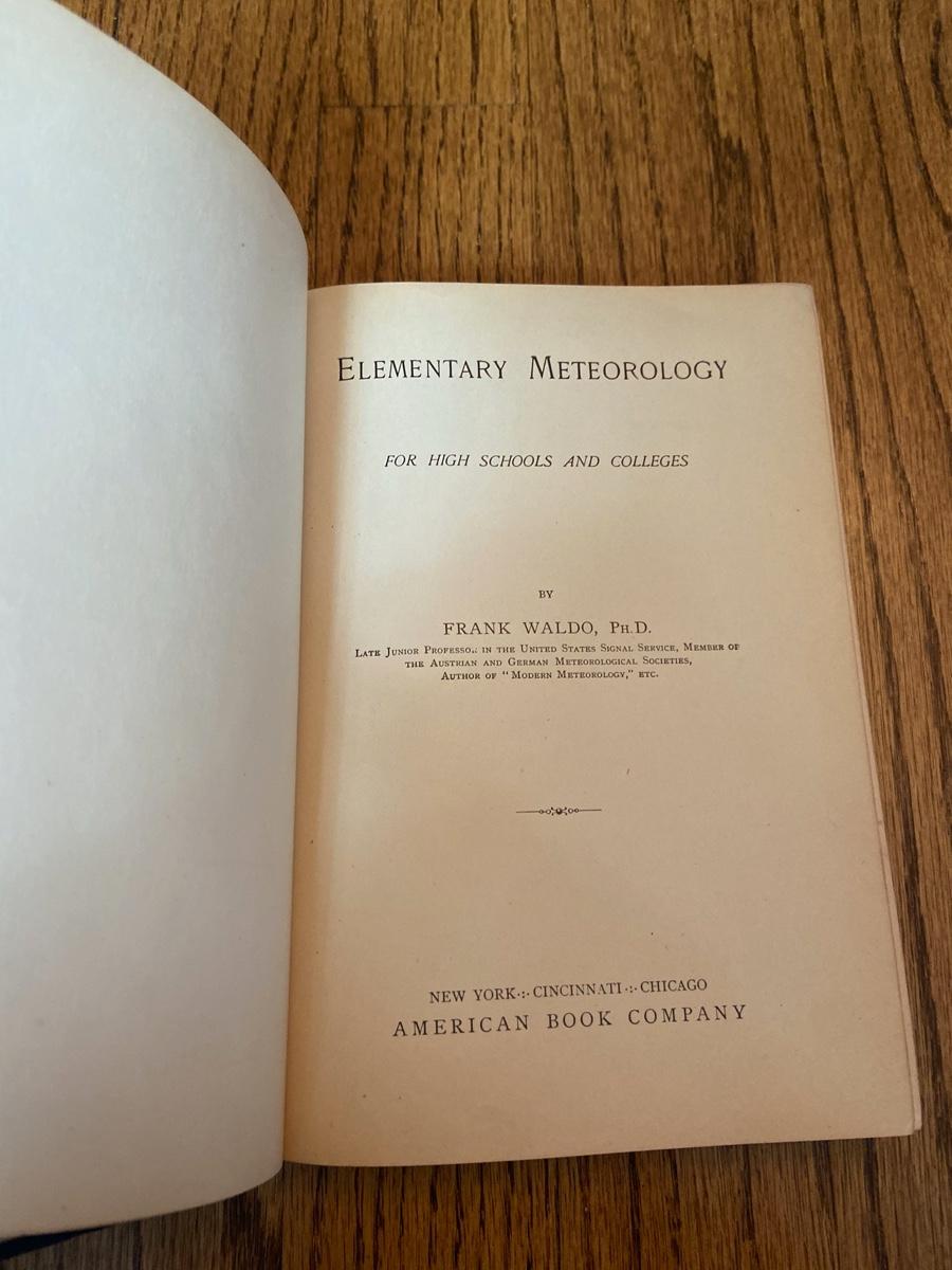Elementary Meterology by Frank Waldo, Ph.D. (1896) published by American Book Company, Blue hardcover