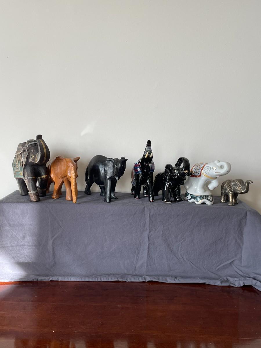 8 different figurines in various materials available. 9"W x 10"H. Mainly Wood, Brass Materials.