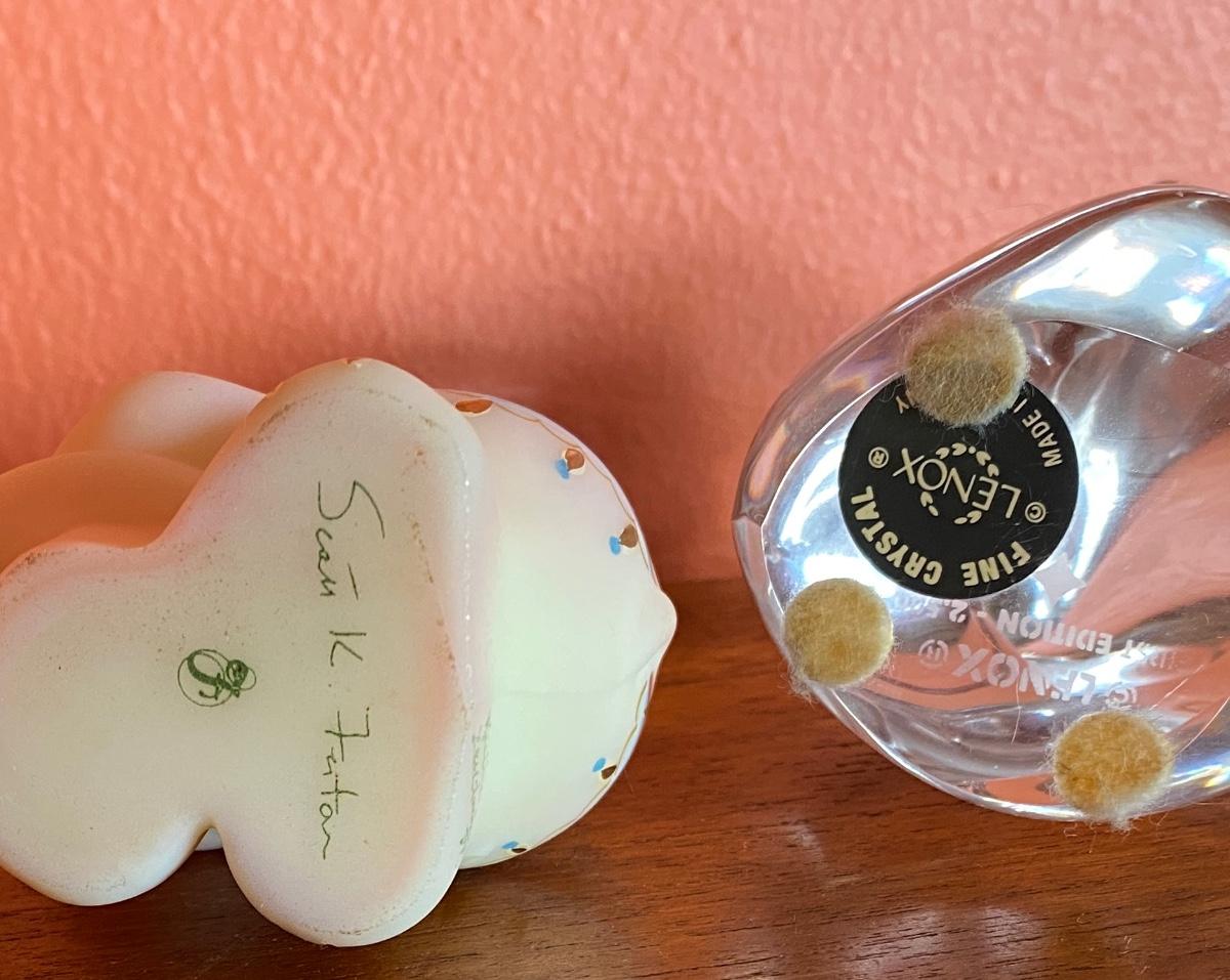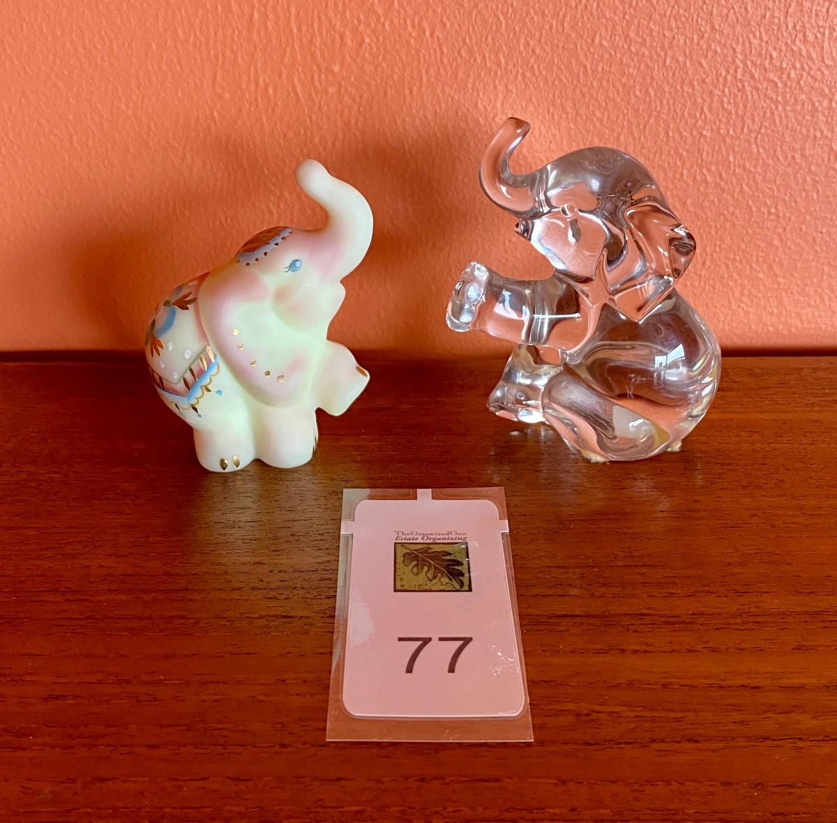 Lot of 2 elephants. Custard glass marked Fenton and the other marked Lenox