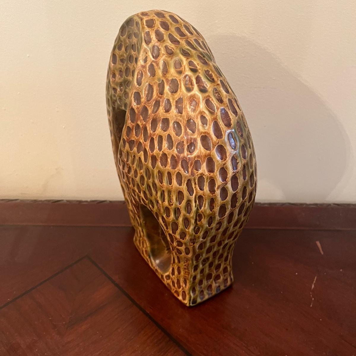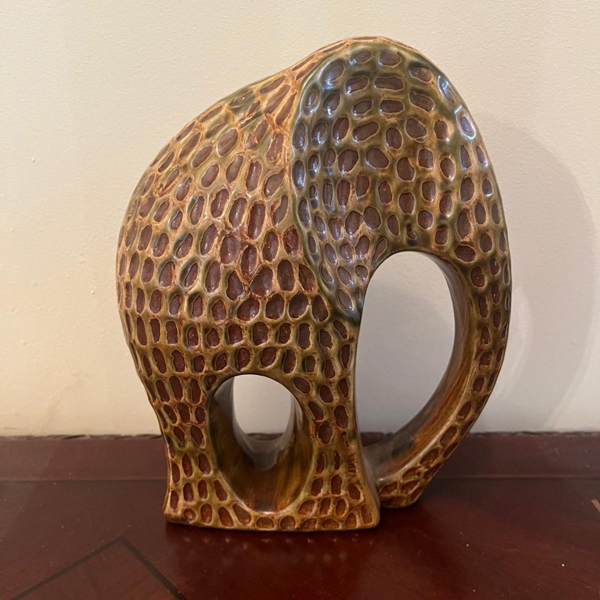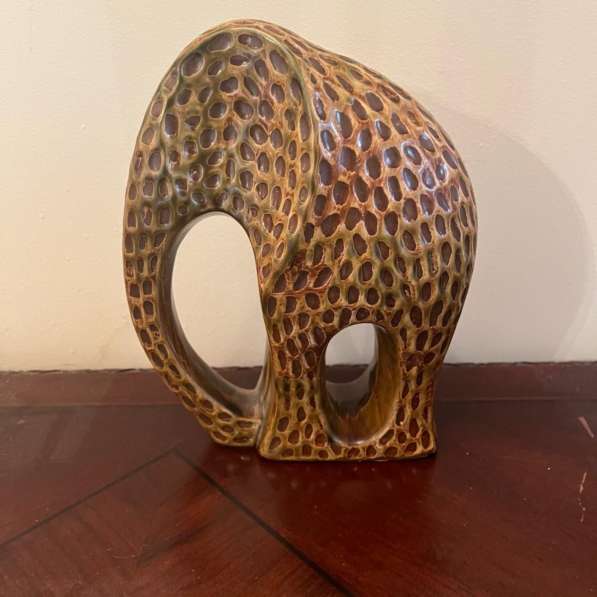 Lot includes two carved wooden owls, ceramic elephant, carved wooden elephant wall art and a leather elephant motif coin purse. Owls measure 3.5”D x 10” tall.