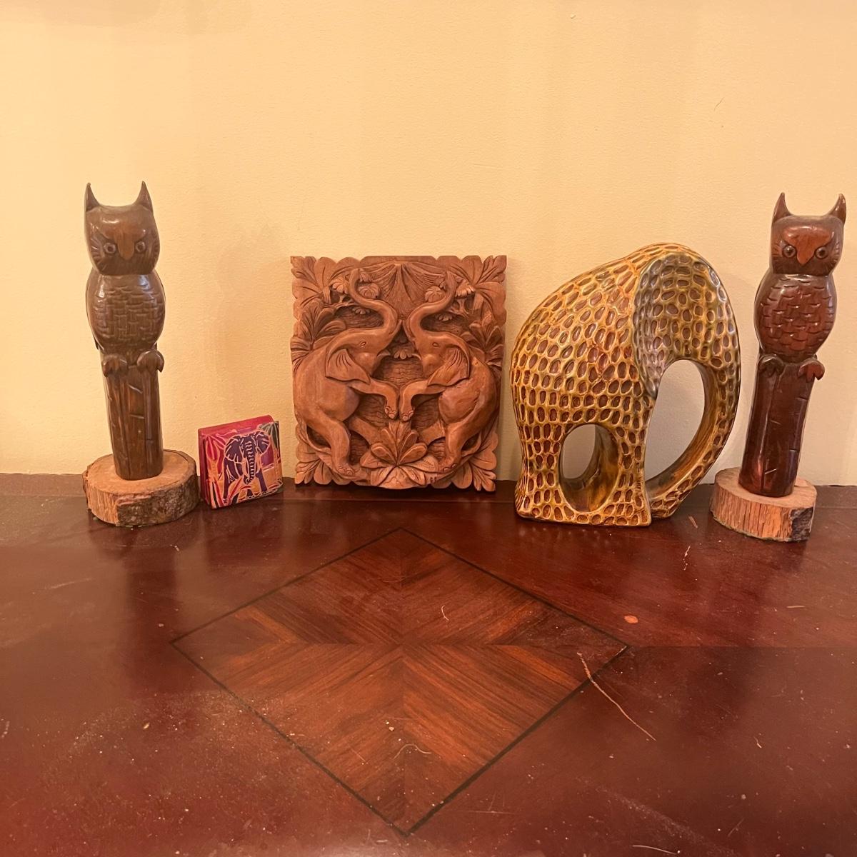 Carved Wooden Elephant & Owl Decor & More (LR-MG)