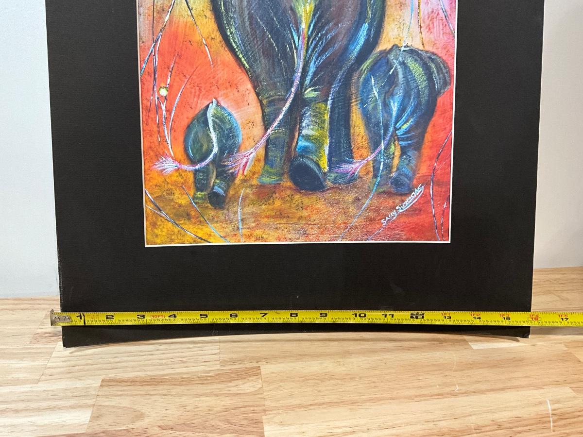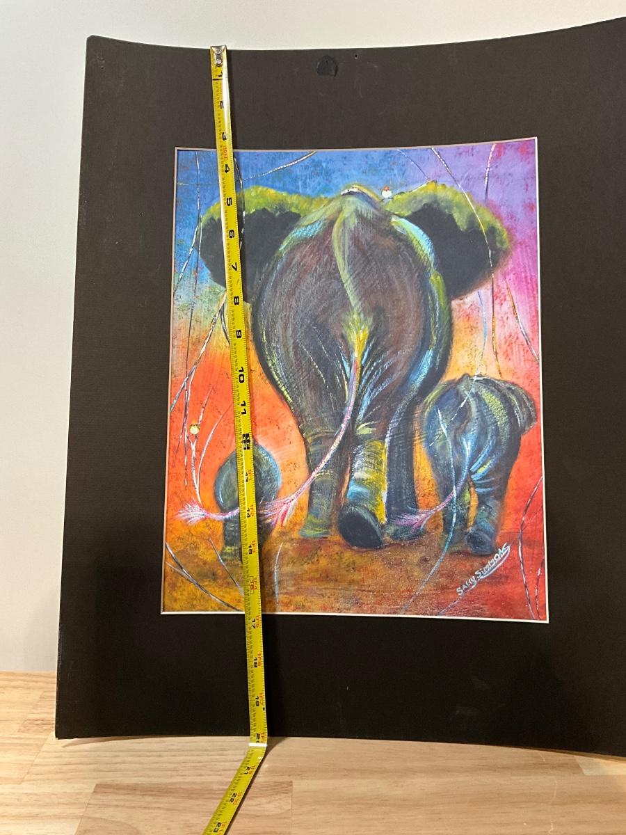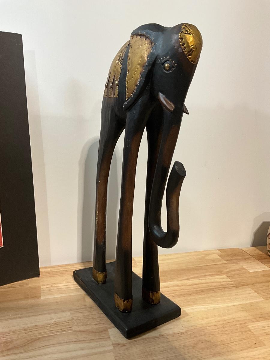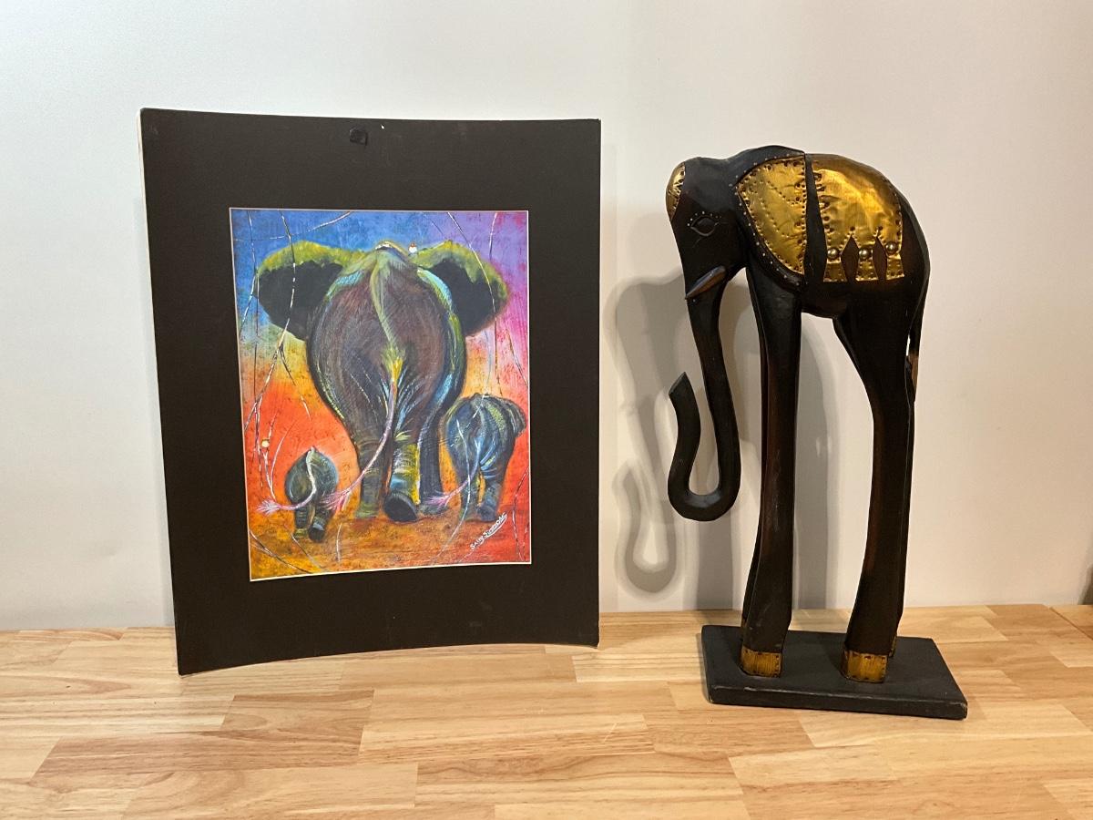 Elephant reprint and African statue
