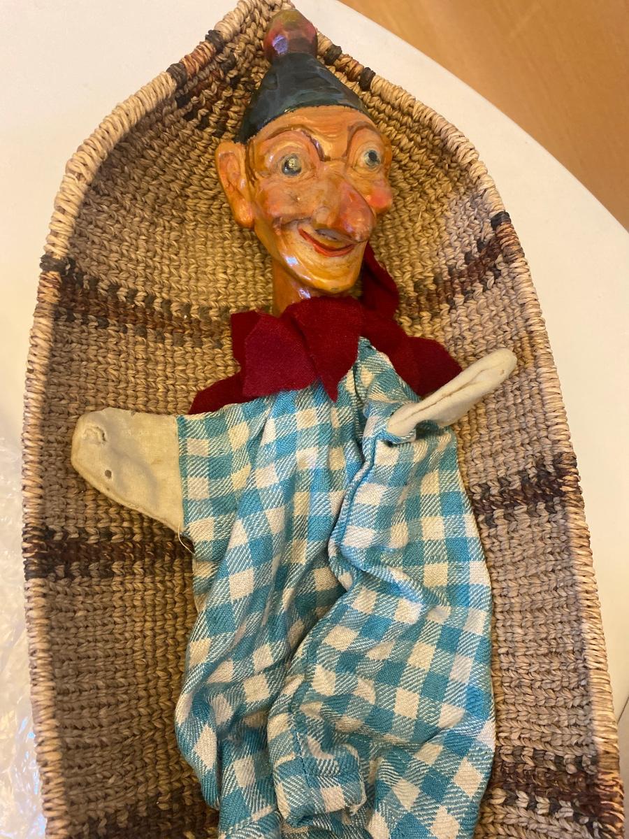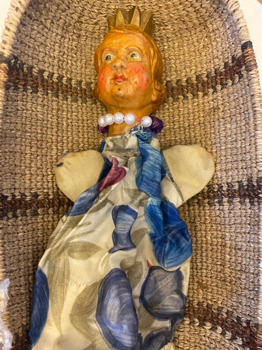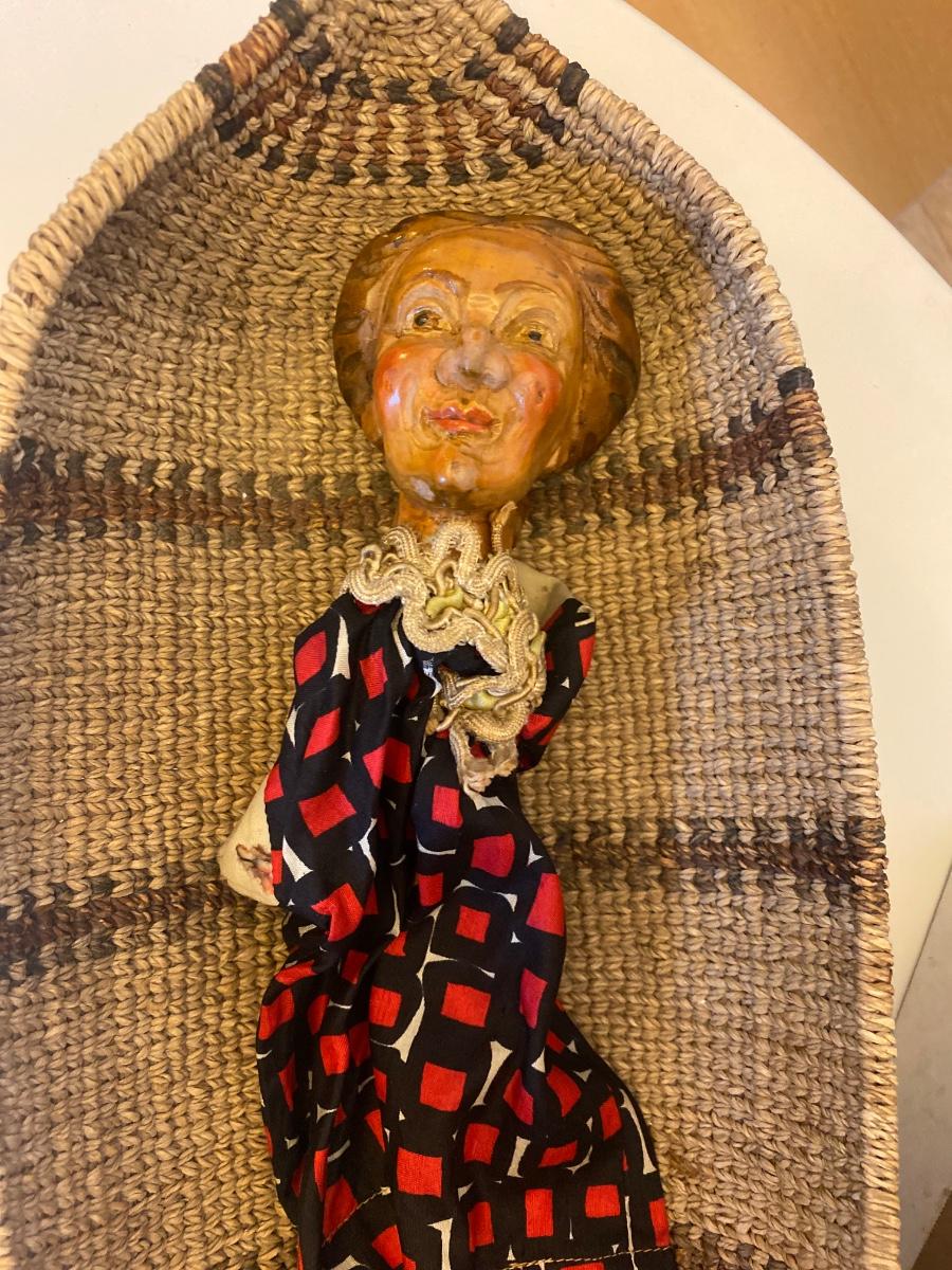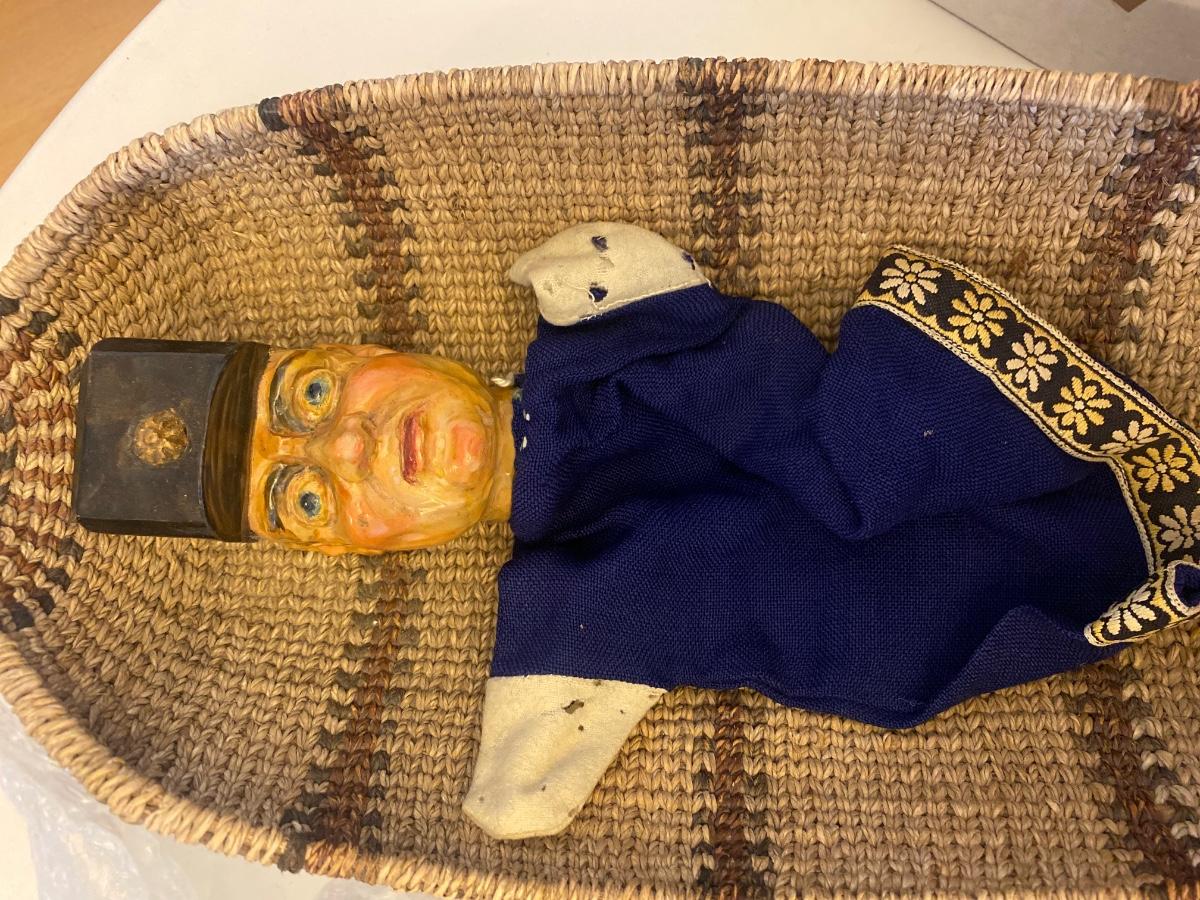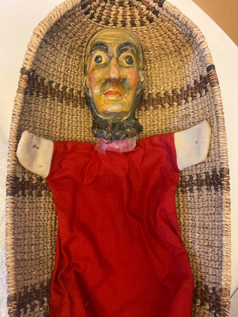 Eleven antique clay head puppets