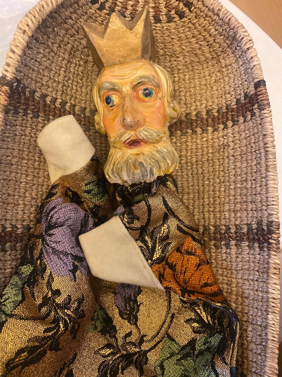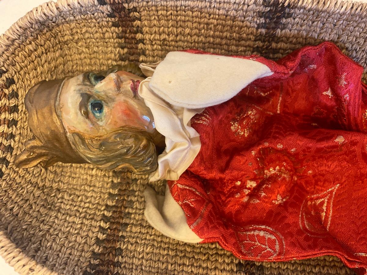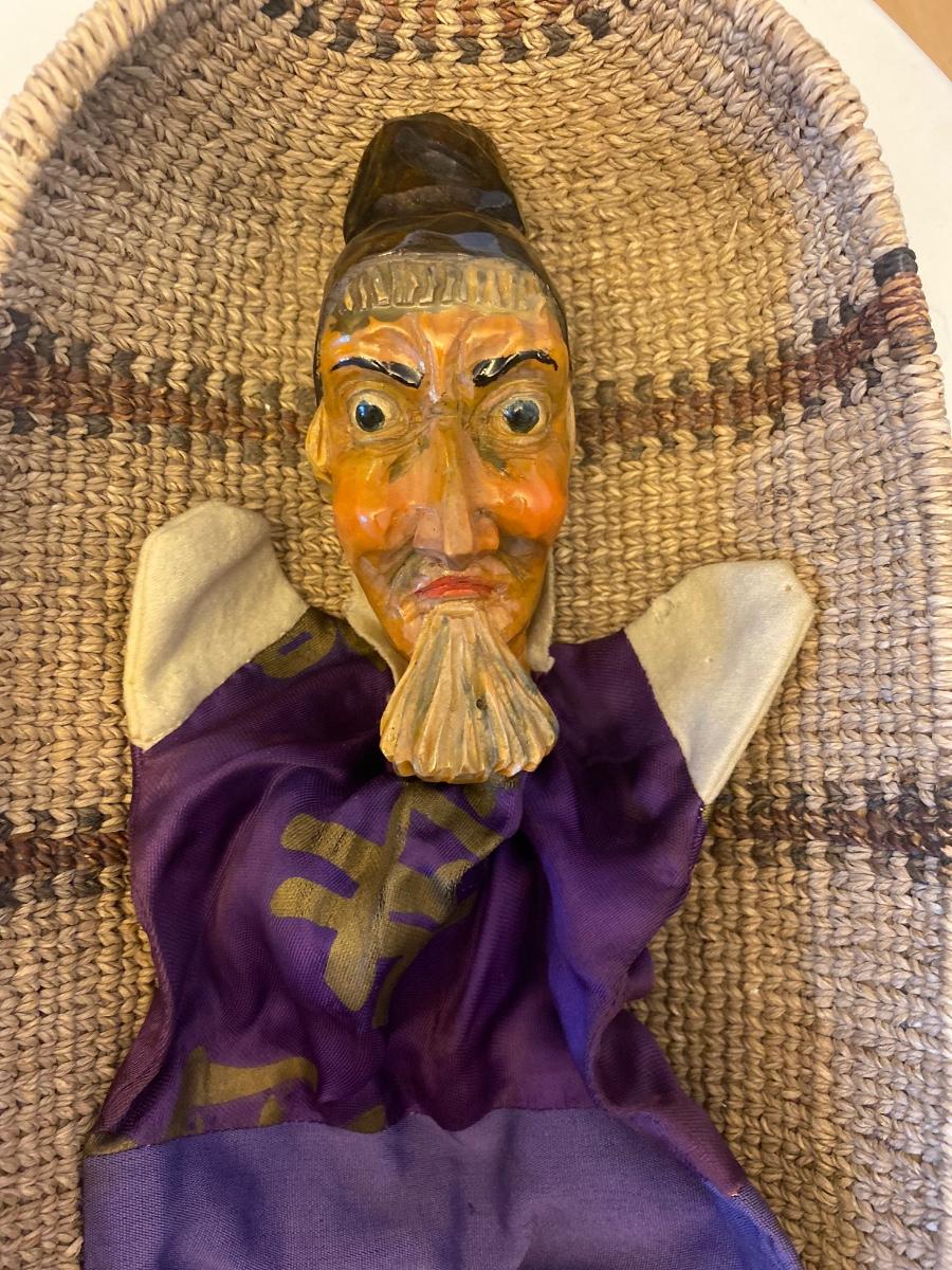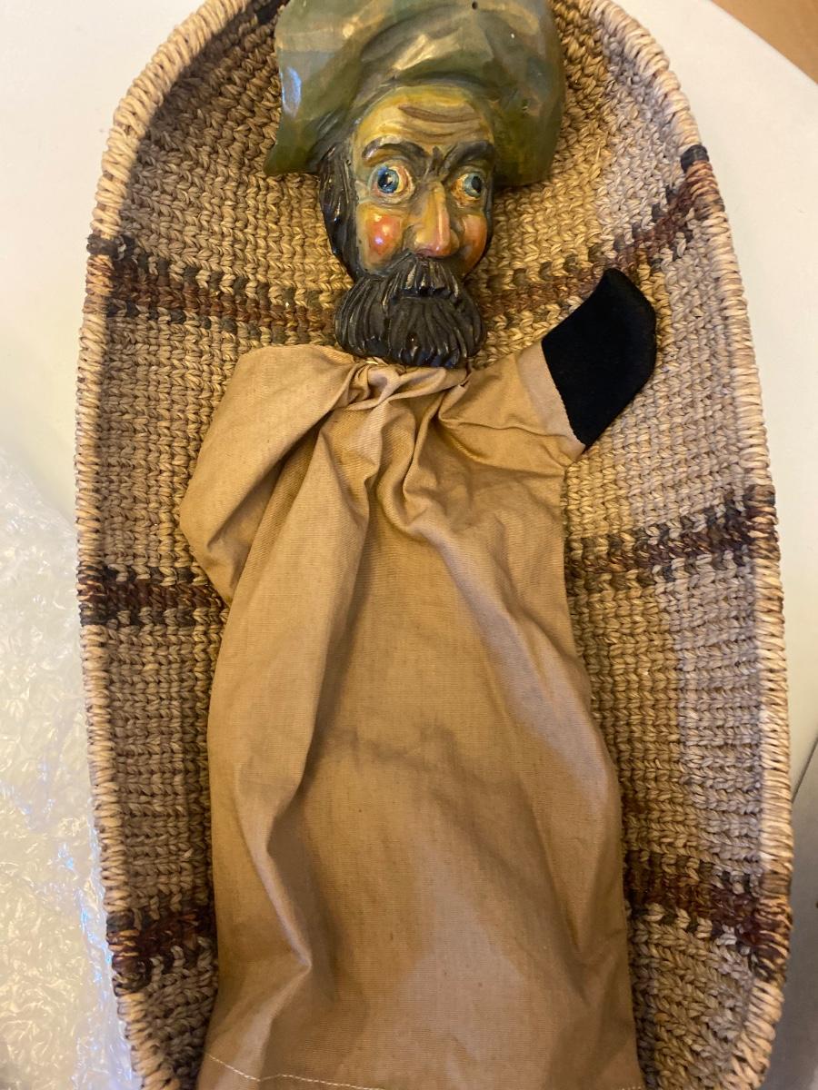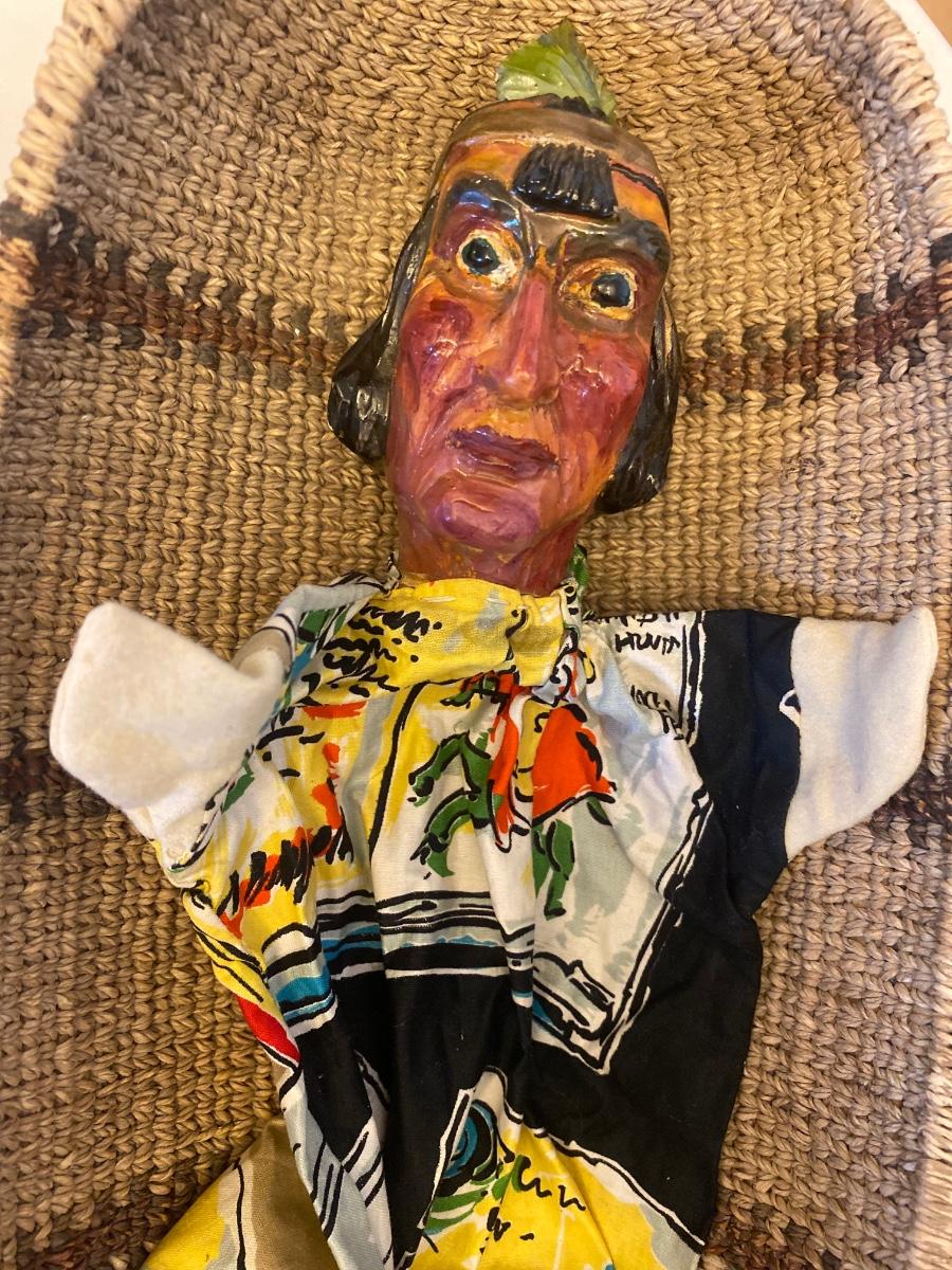 Eleven antique clay head puppets