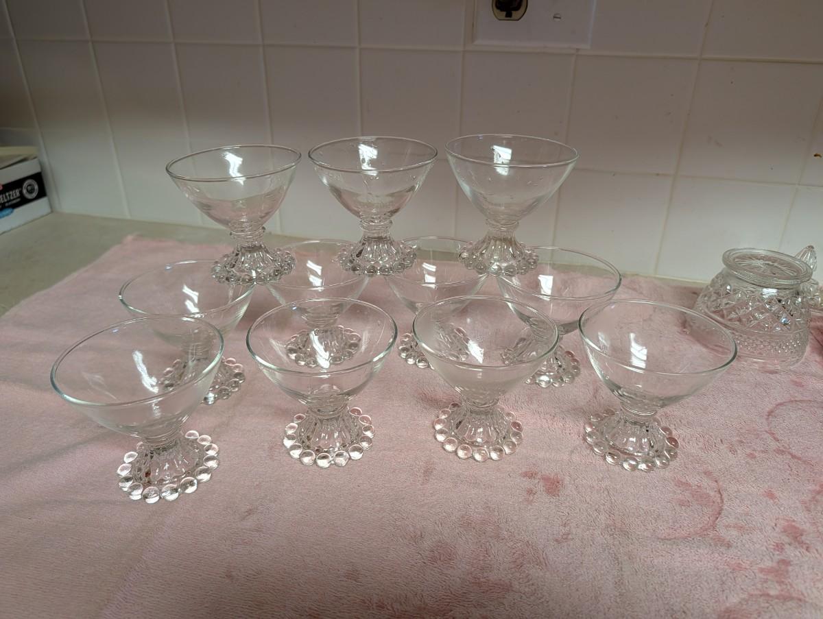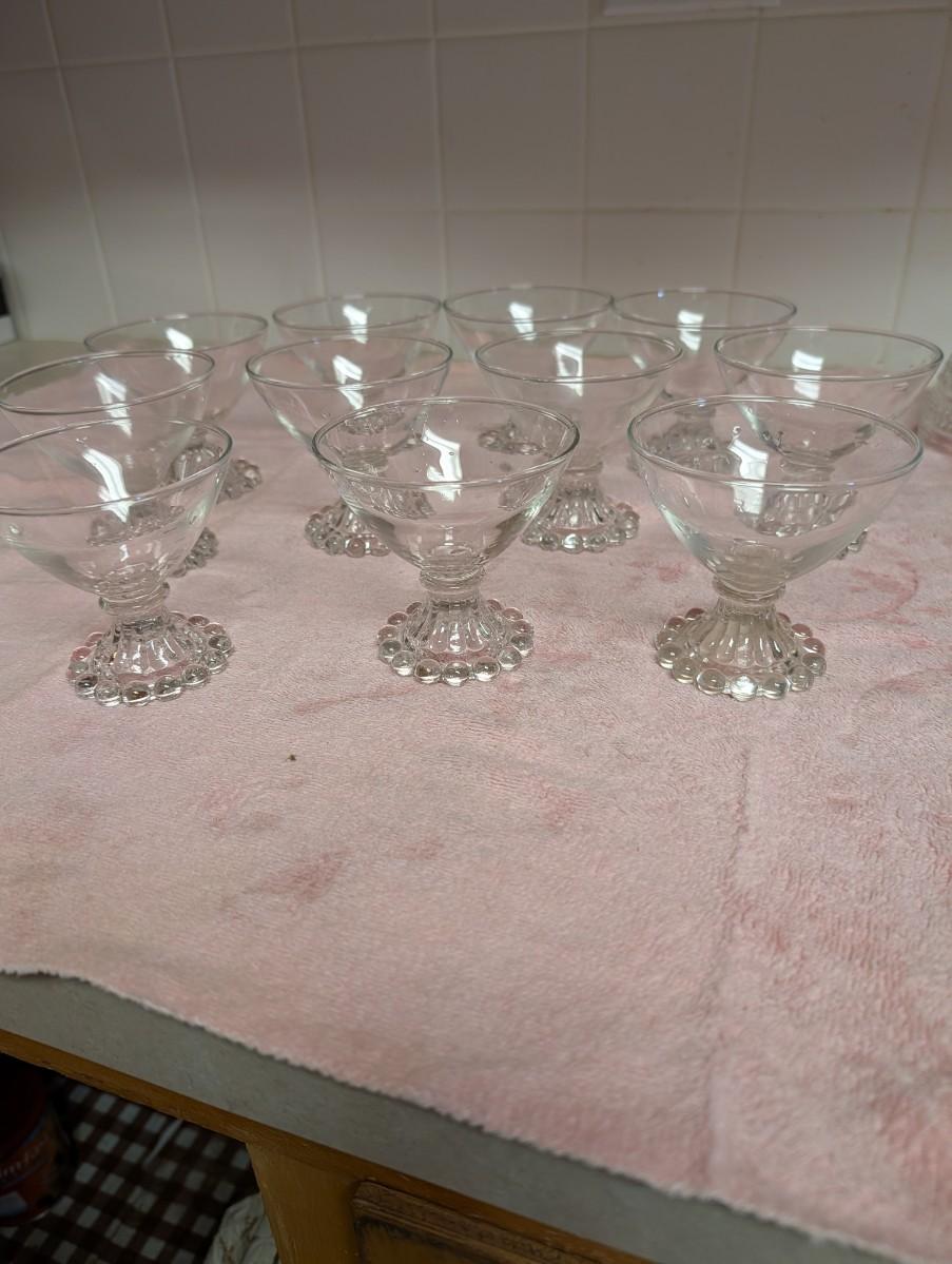 Eleven Anchor Hocking Boopie clear glass sherbet cups.