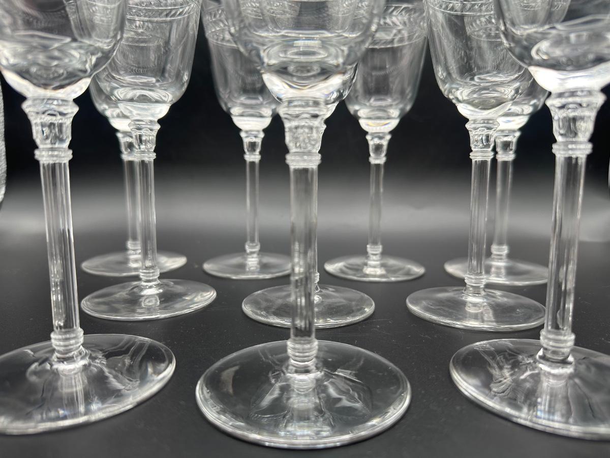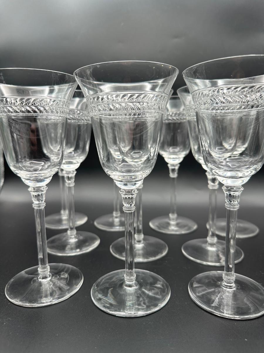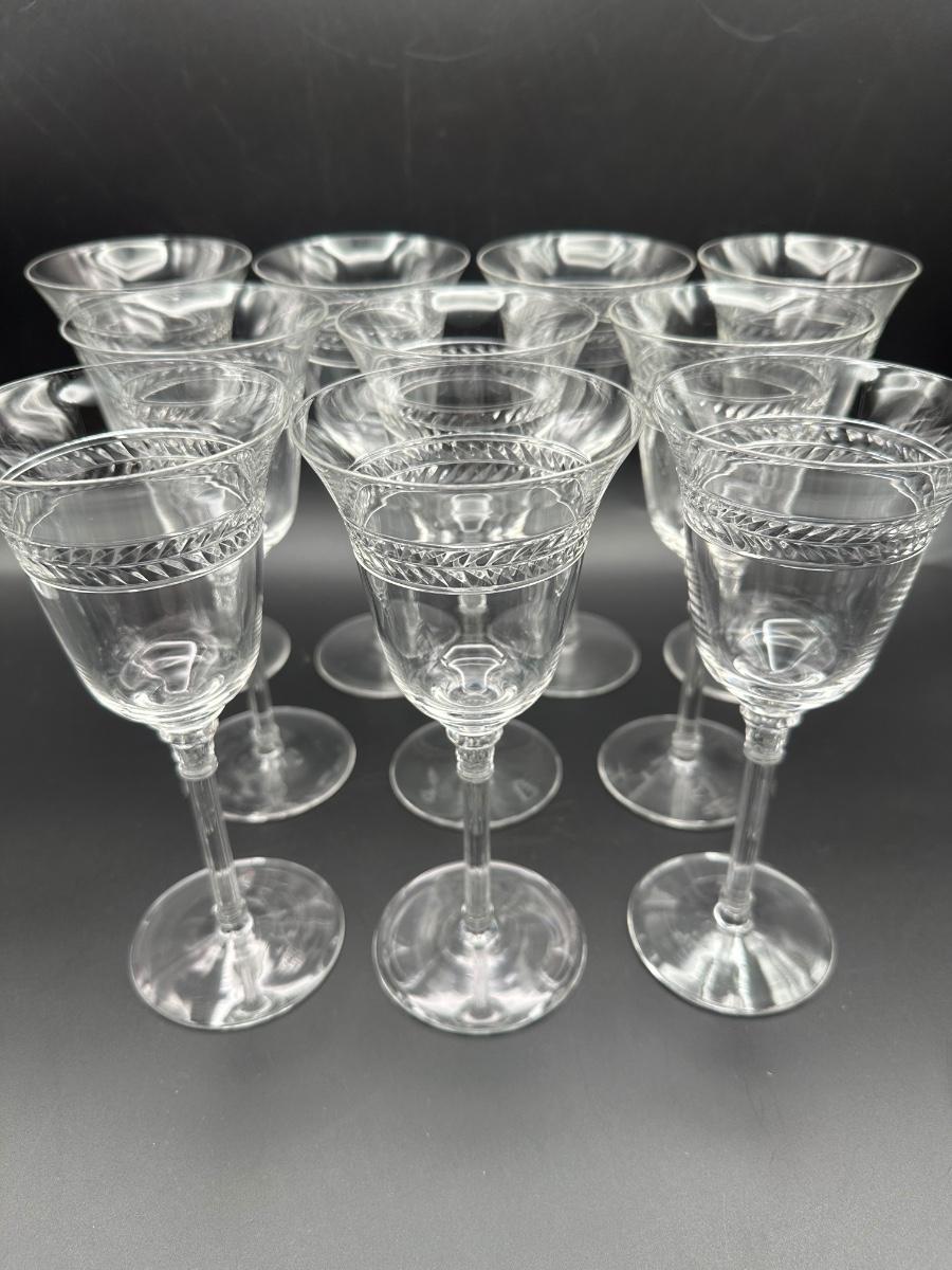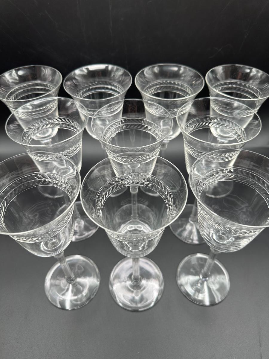 Vintage Wine Glasses with Polished Cut Laurel Pattern (11)