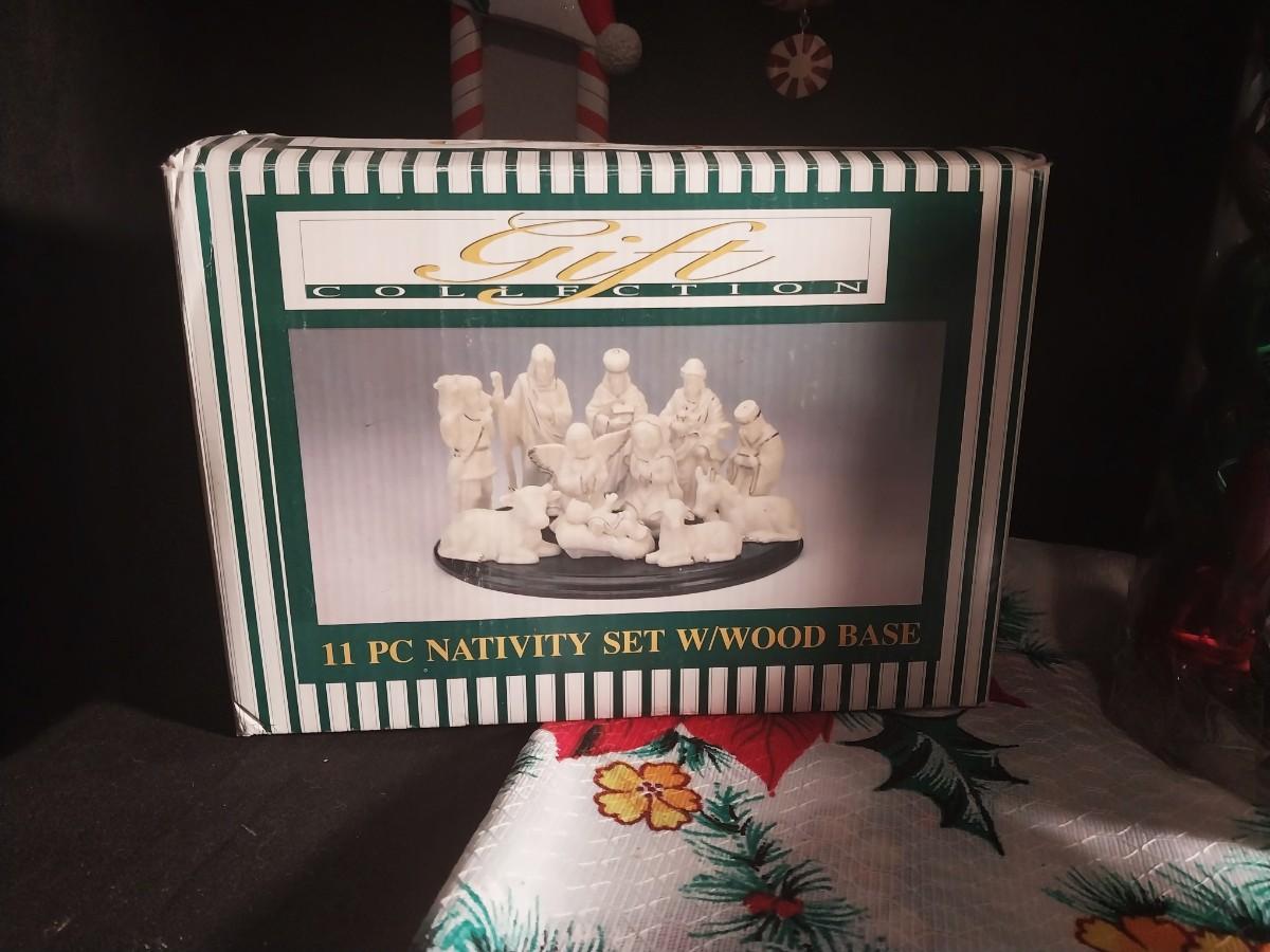 ELEVEN PIECE NATIVITY SET WITH WOOD BASE-ORNAMENTS-HOLIDAY LINEN AND MORE