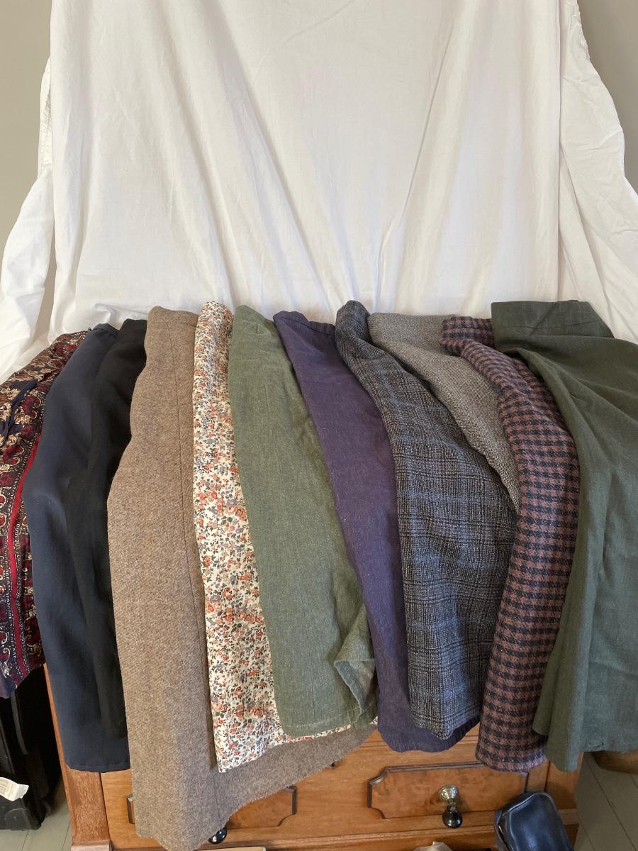 Assorted skirts seamstress made, unknown sizes. Some wool.
