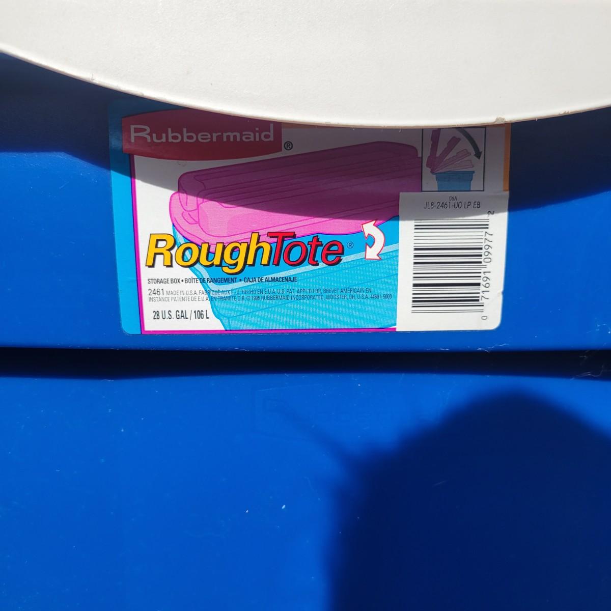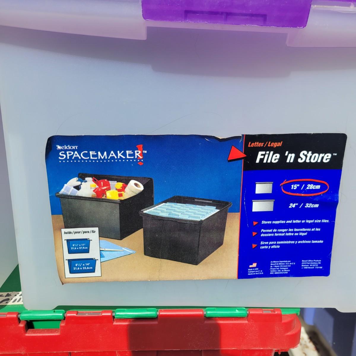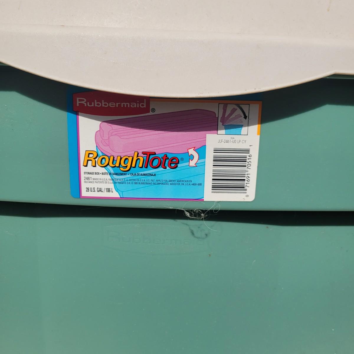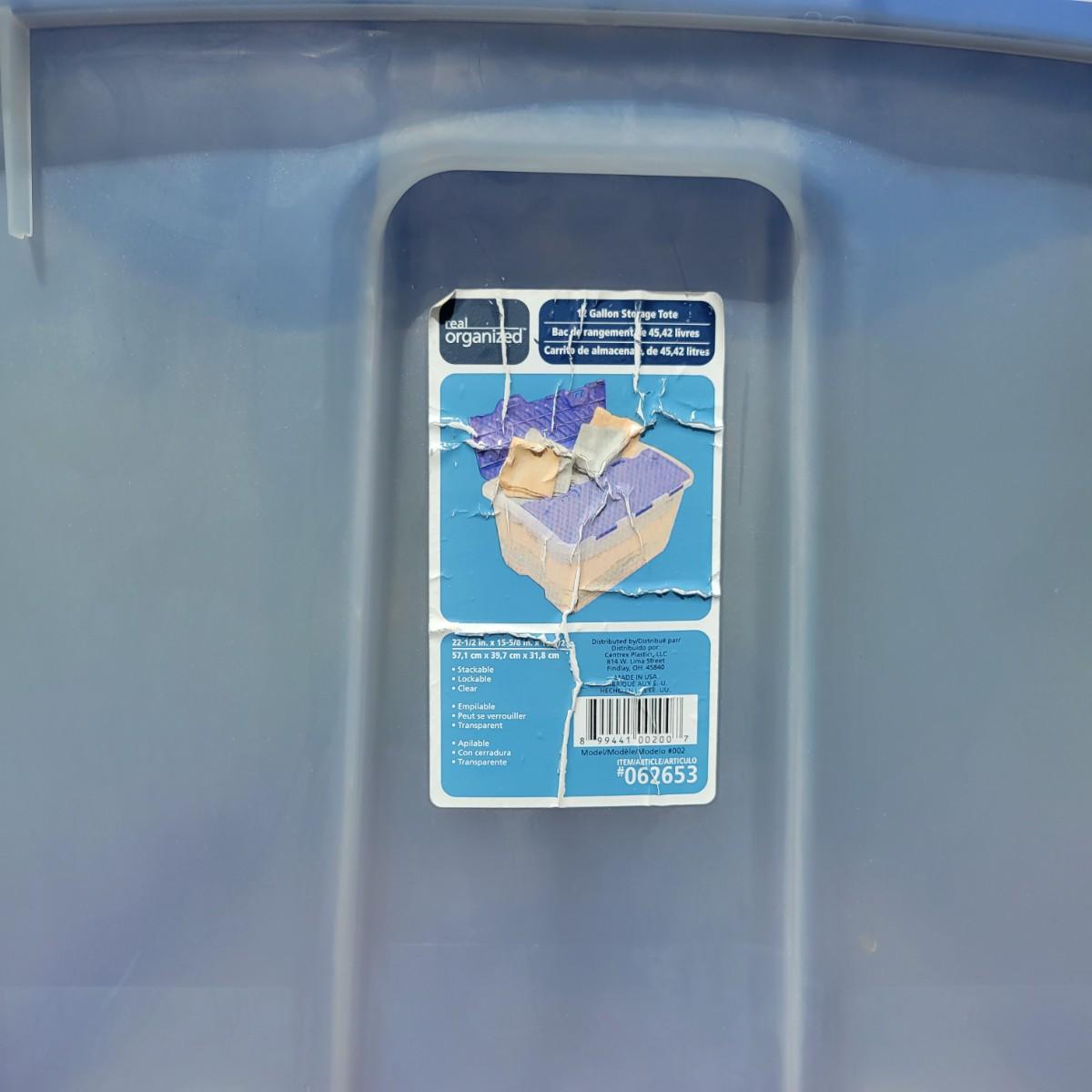 An assortment of storage totes, bins and other space saving containers. All bins have lids and the largest clear bin with the white lid is 33gal and measures approximately 35" x 26" x 14"H. Local pickup only