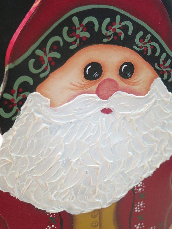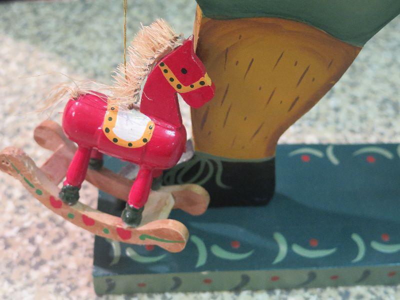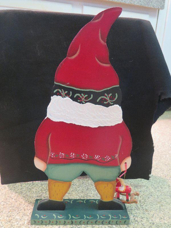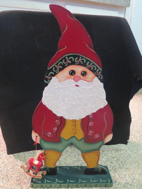 Hand painted tole elf holding a rocking horse toy. This elf stands 24 inches tall and is tole painted on both sides. Please read Terms and Conditions before placing a bid. Pick up is Friday, October 25th between 4 and 7, and Saturday, October 26th between 9 and 1. Props included in photos are not included in listing. All measurements are approximate. Comes from home with cats.
