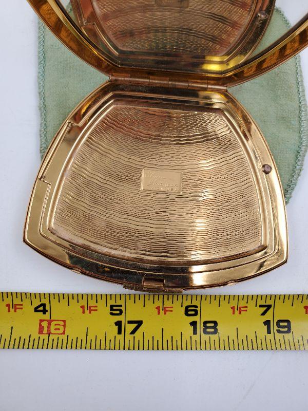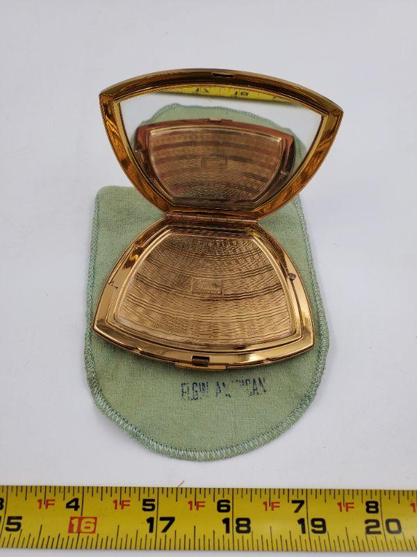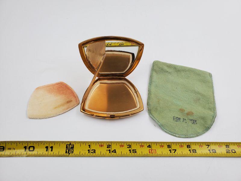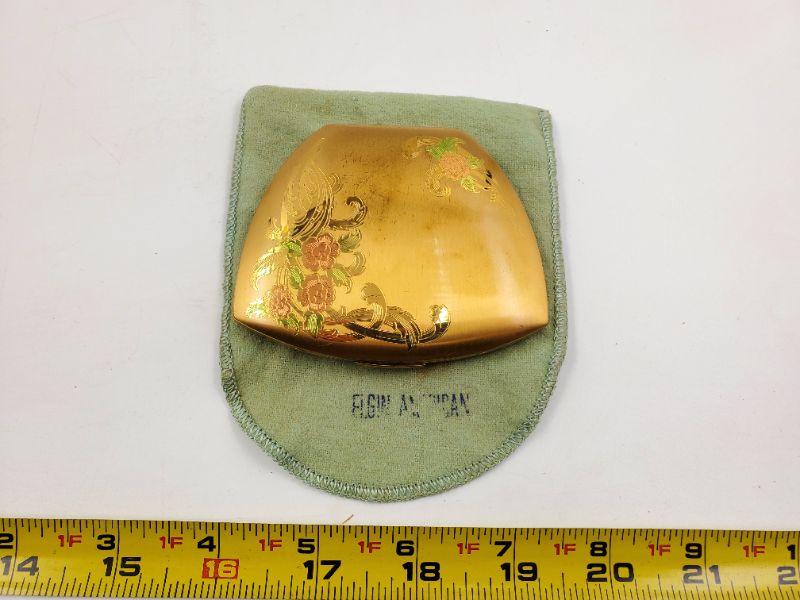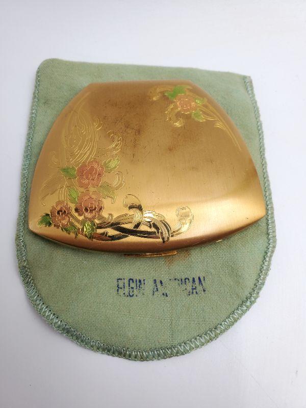 This amazing Elgin American compact is gold tone and etched with beautiful flowers...