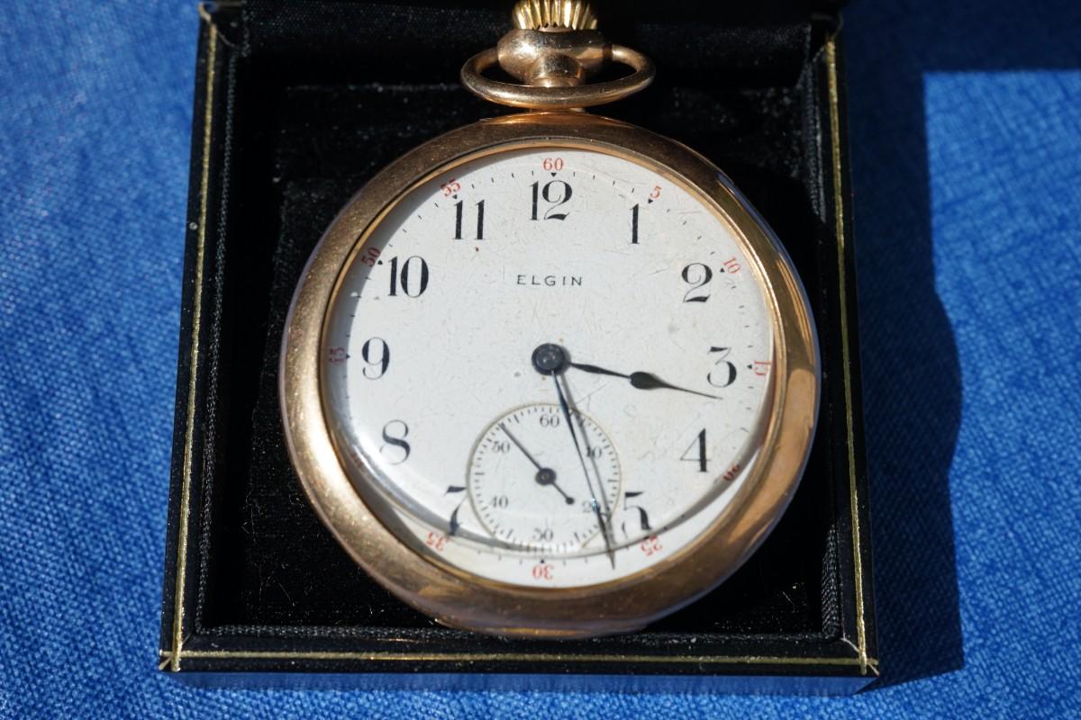 gold filled elgin pocket watch . open face. bezel with watch but doesnt seem to fit. too large for this watch. selling as is. not working. selling for repair or parts.