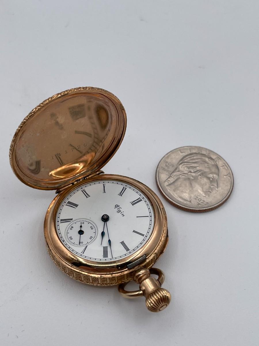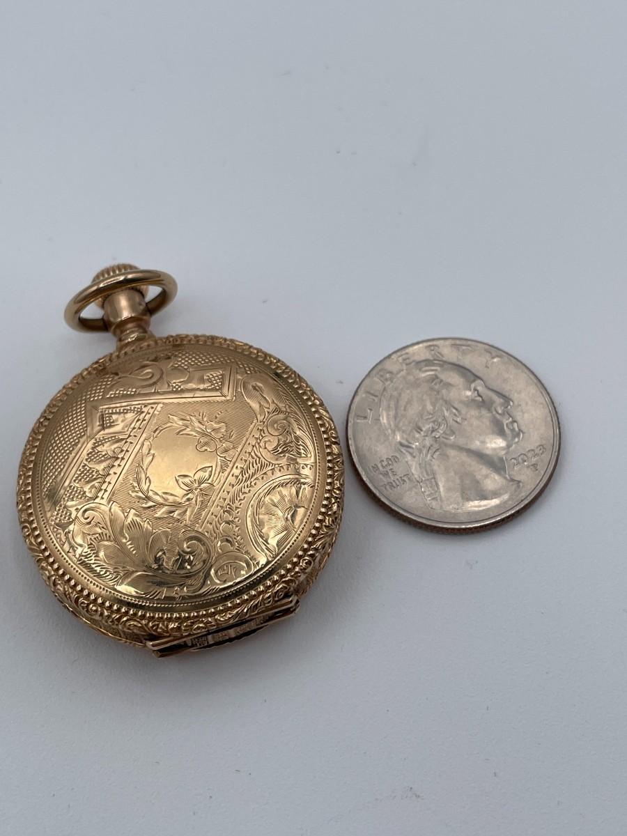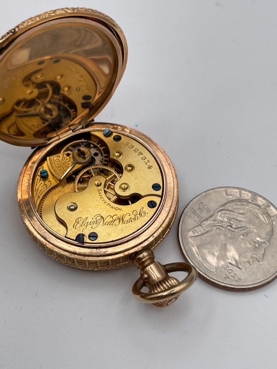 Elgin Ladies Pocket Watch, No. (6327614), No Glass. Case: Essex No. 141720, Acid tested GF. Condition - Winder & watch are in working order. This is not a guarantee that all parts are original nor is the watch autheniticated.
