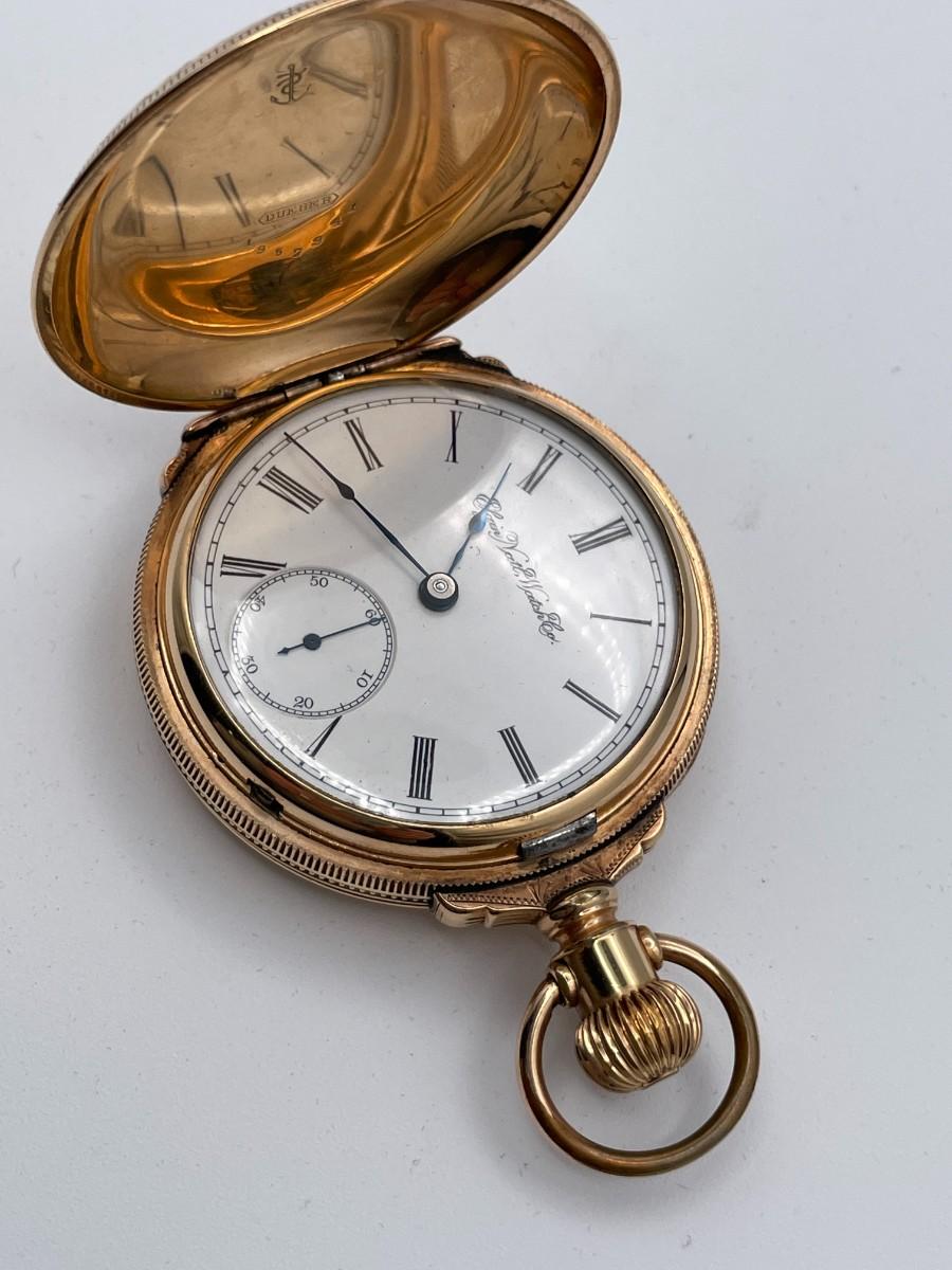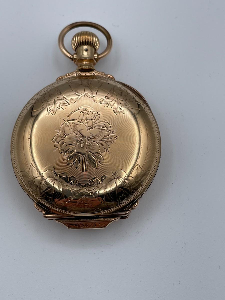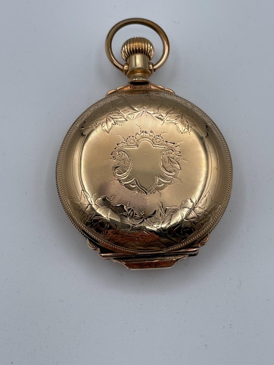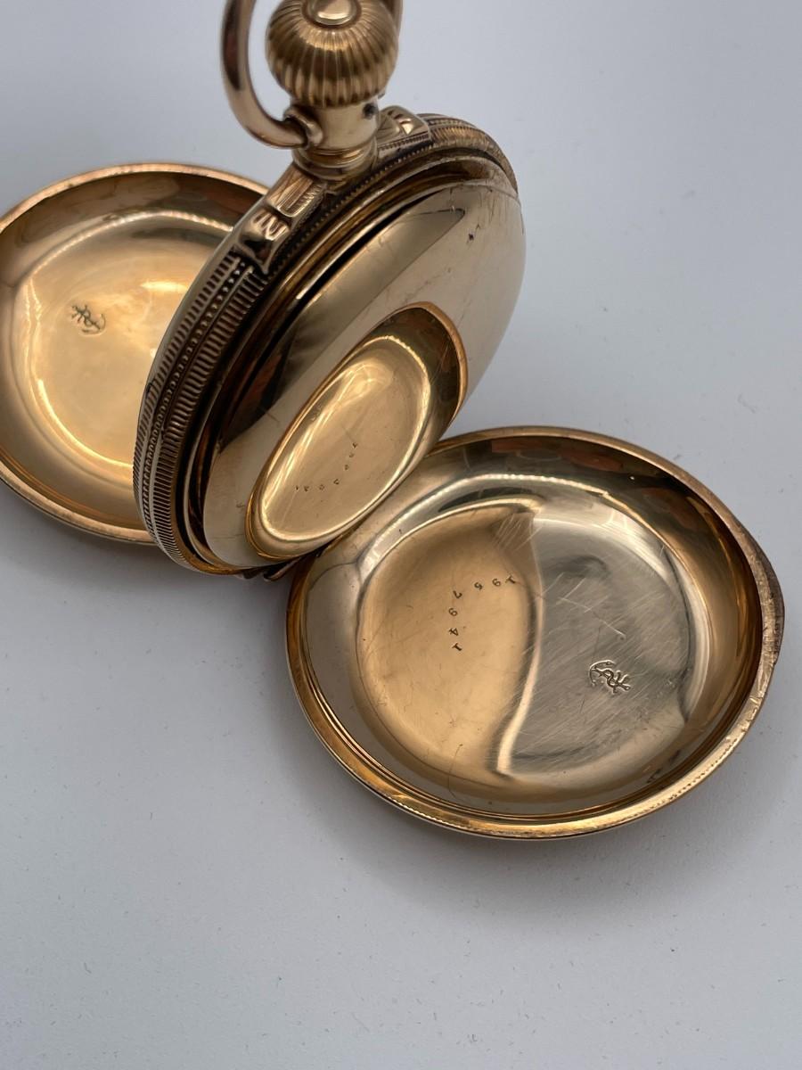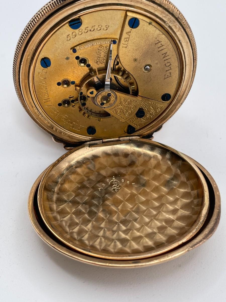 Elgin National Watch Company Pocketwatch - Gold Tone - Watch Number (5985583) - Size 18S - with Gold Filled Dueber Case (based on research) number (1957941). Condition - Winder & watch are in working order. This is not a guarantee that all parts are original nor is the watch autheniticated. Estimayed Value $185 - $245. Year 1895.