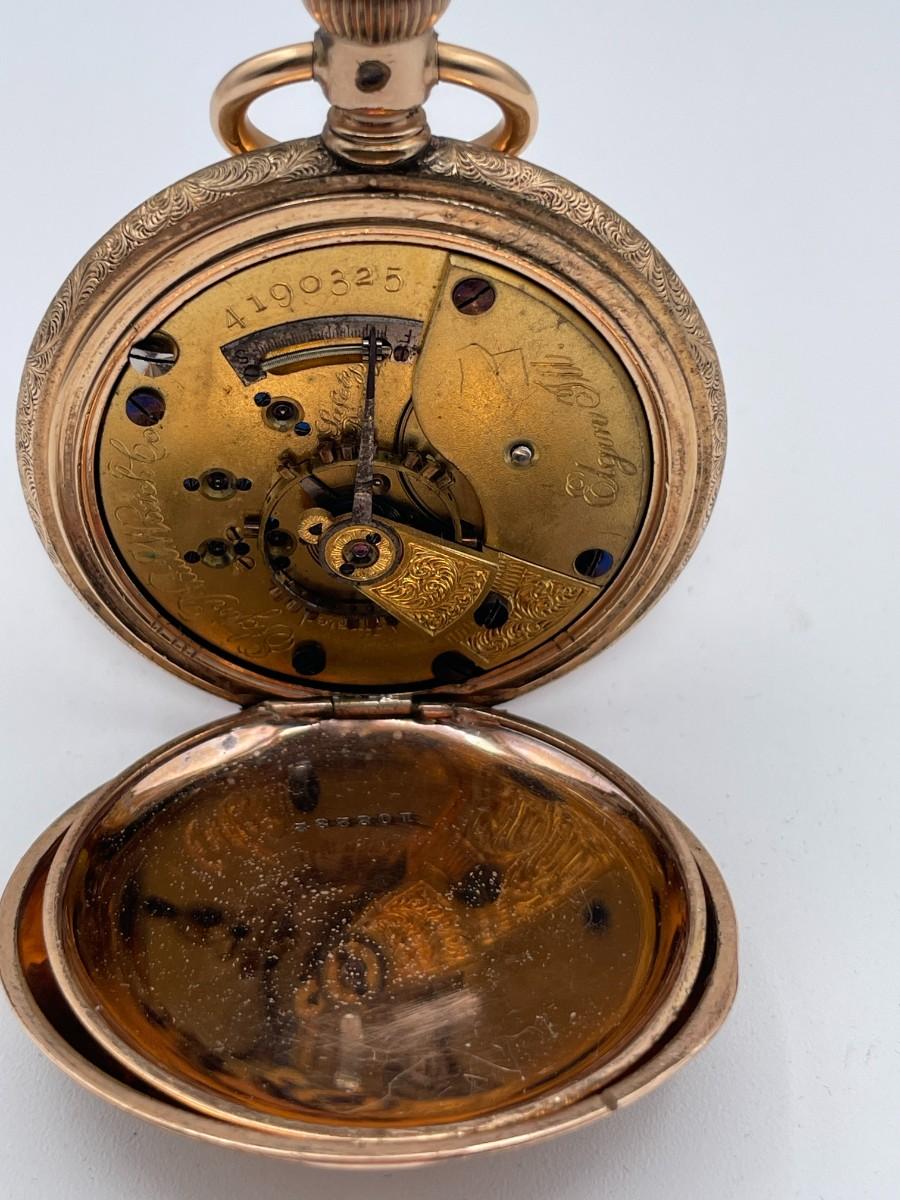 Elgin National Watch Company Pocketwatch - Gold Tone - Watch Number (4190325) - Size 18S - with Premiere Gold Filled Case (based on research) number (108282). Condition - Winder works but Watch is NOT in working order. This is not a guarantee that all parts are original nor is the watch autheniticated. Estimated Value $260 - $345. Year 1891.