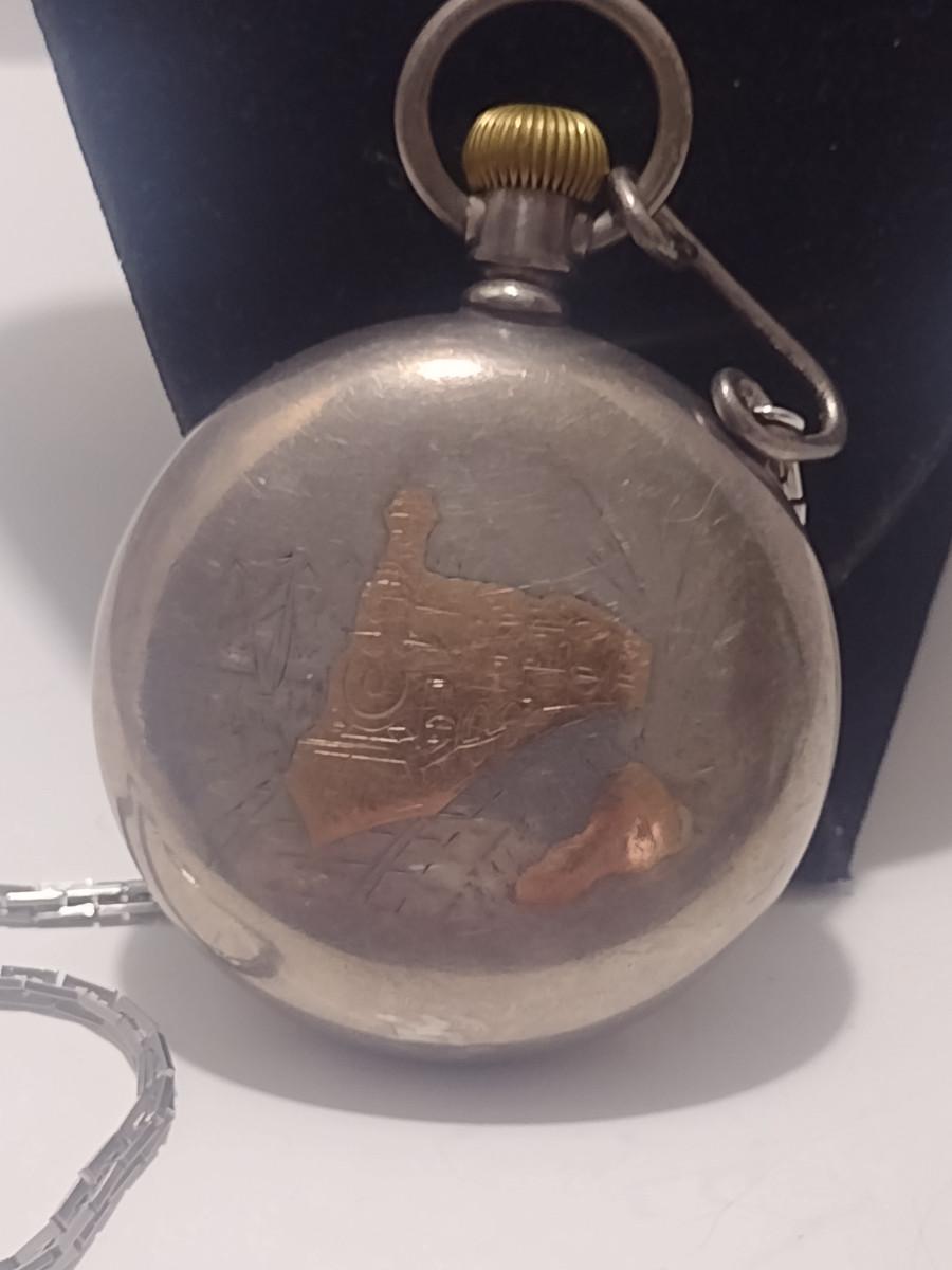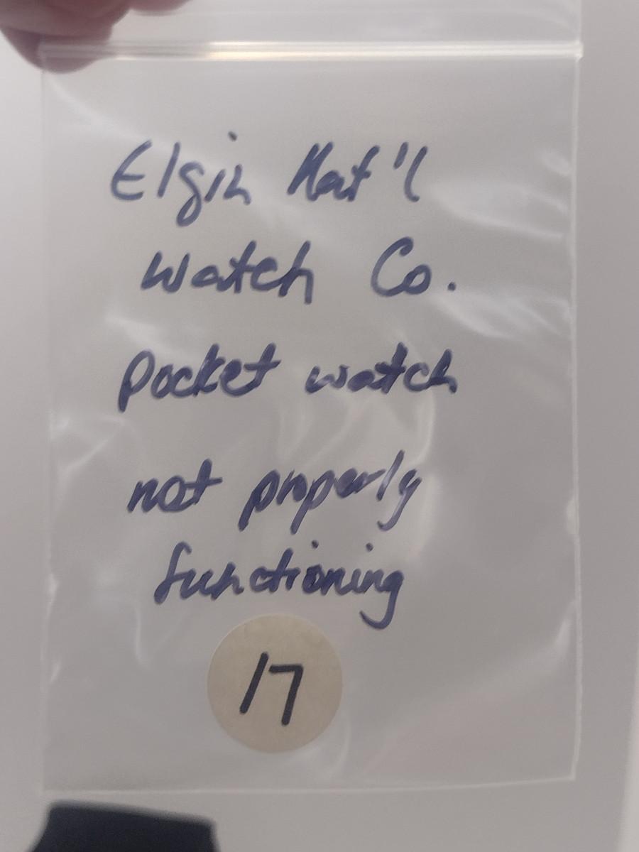 Elgin National Watch Company G.M. Wheeler Pocket Railroad Watch with Chain- (#17). Item is not currently functioning- crown stem needs repair.