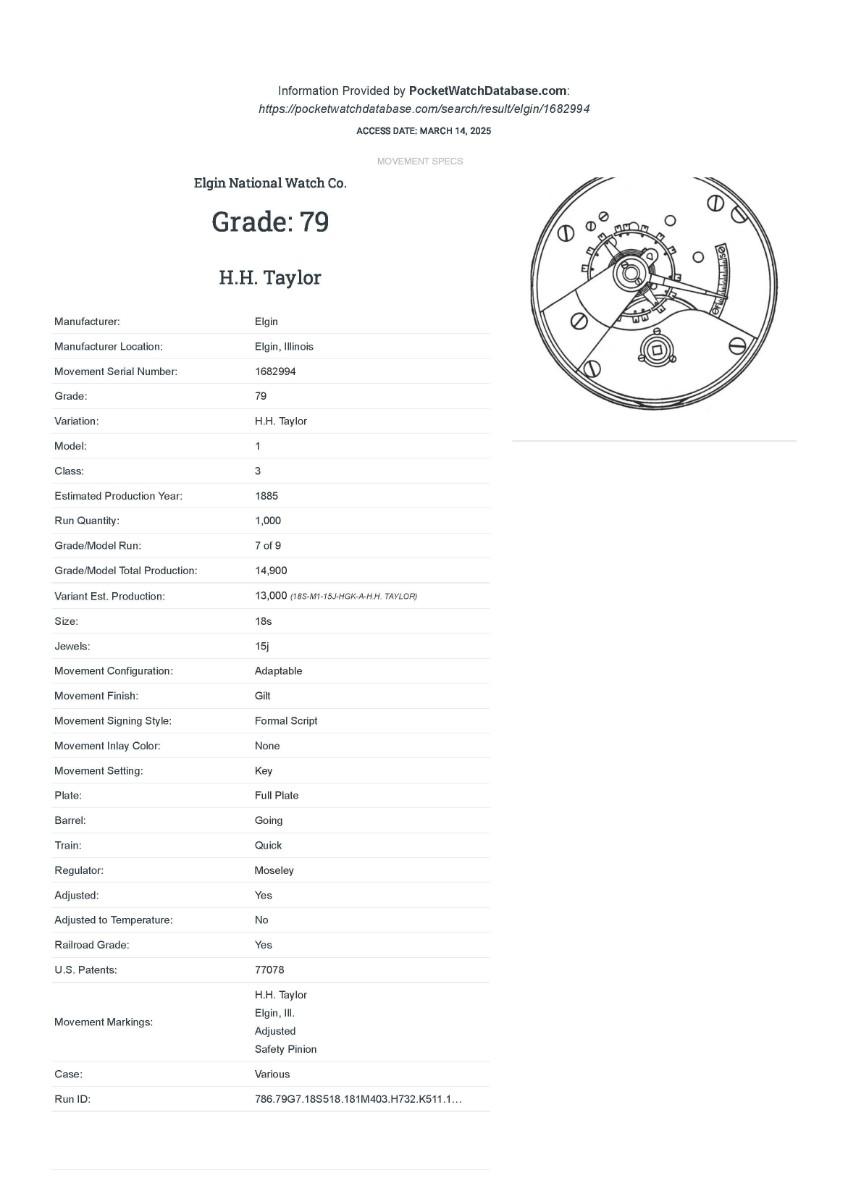 Elgin Nat'l Watch Co., No. (3832585), Size 18s, Prod Yr. 1885, glass crystal chipped. Case: Keystone No. 1682994, Acid Tested 14K. Condition - Winder & watch are in working order. This is not a guarantee that all parts are original nor is the watch autheniticated.