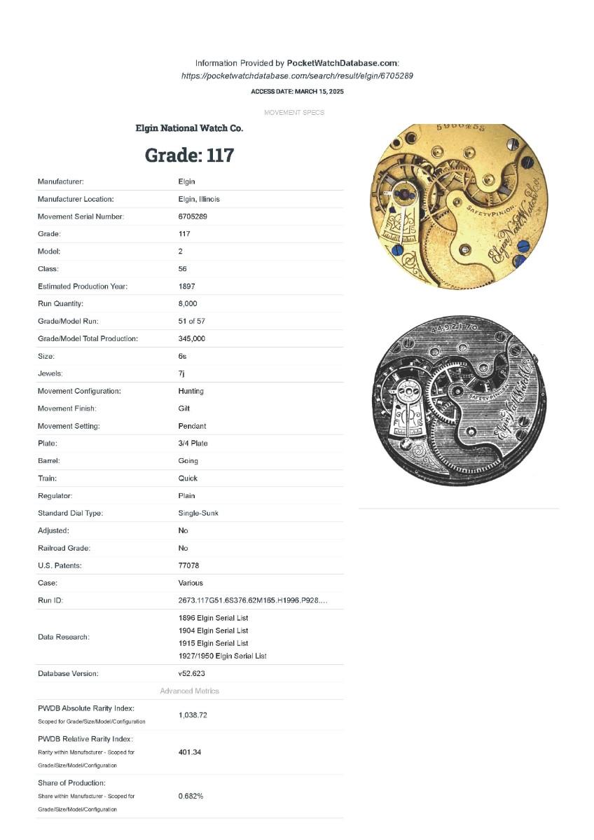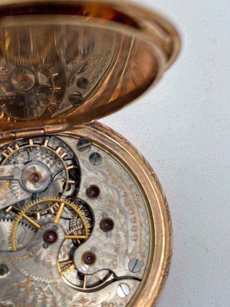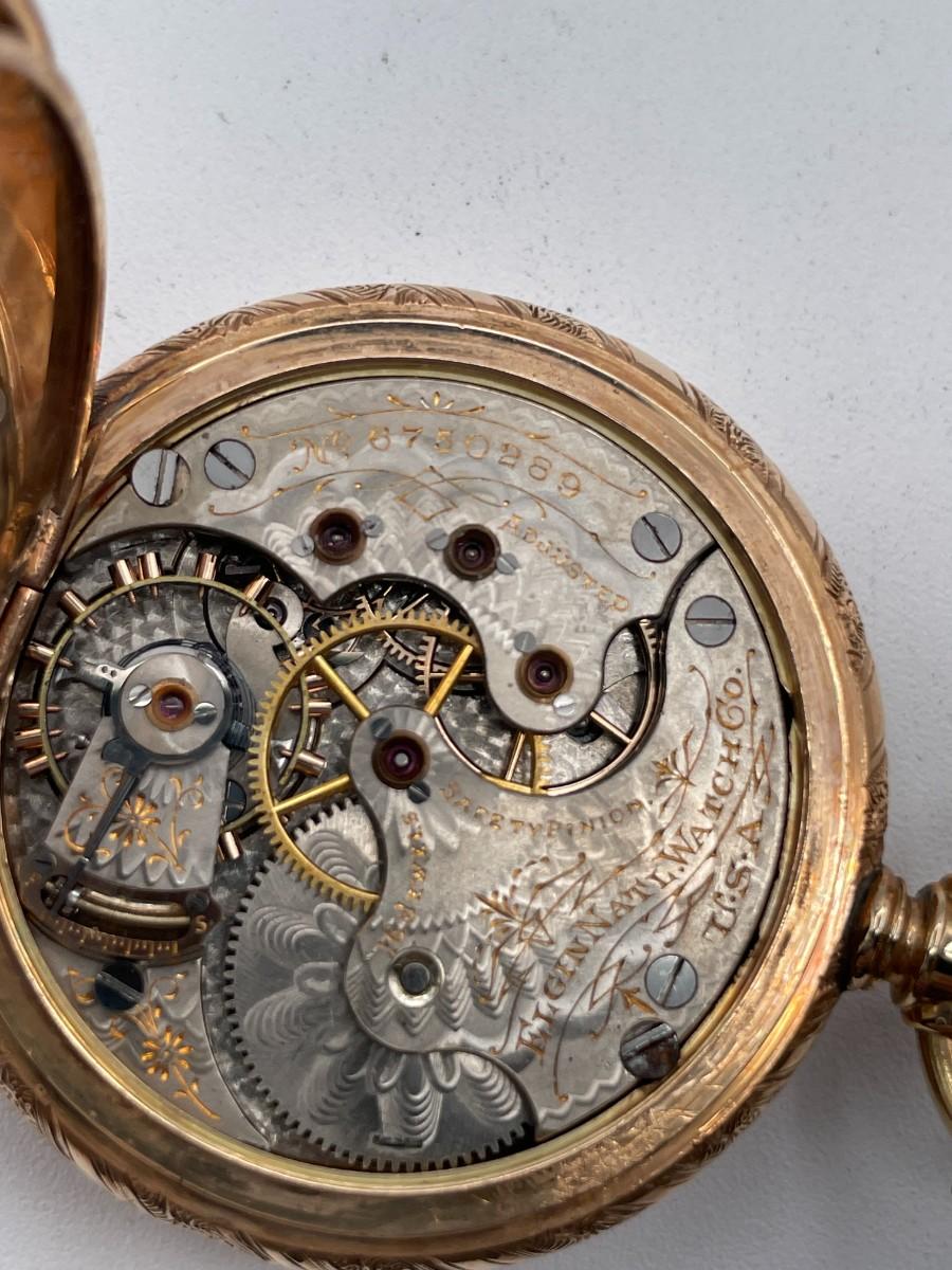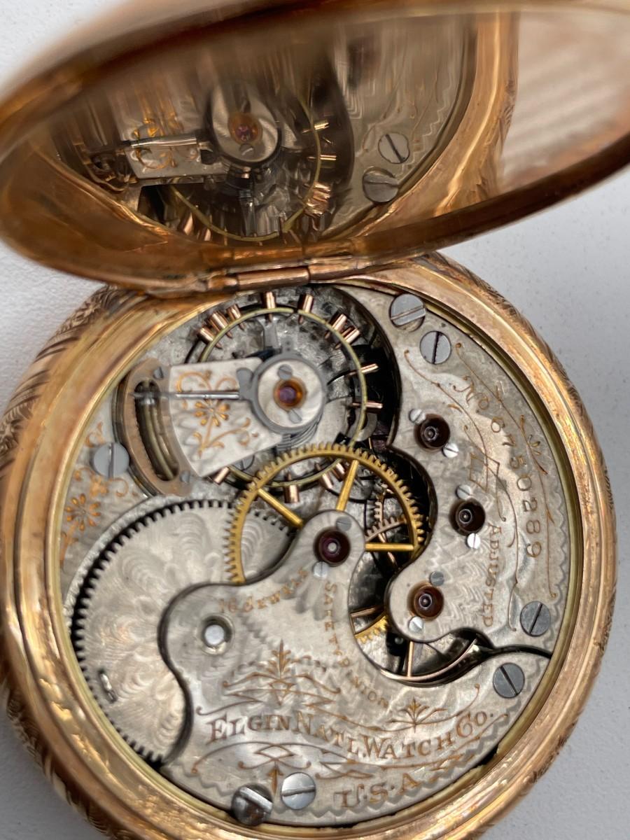 Elgin Pocket watch No. (6705289), Size 6S, Production Yr. 1897. Case: US Assay 14K warrantied, No. 181cc. Colorful birds on front case. Condition - Winder & watch are in working order. This is not a guarantee that all parts are original nor is the watch autheniticated.
