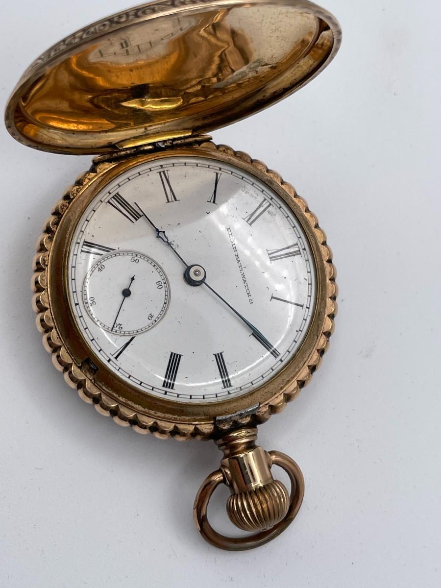 Elgin Pocketwatch - Gold Tone - Watch Number (1784025) - 17 Jewels, Adjusted - Size 18S with Gold Tone/Gold Filled - Number (2613066). Condition - Winder & watch are in working order. This is not a guarantee that all parts are original nor is the watch autheniticated. Estimated VAlue - $245 - $375. Year 1885