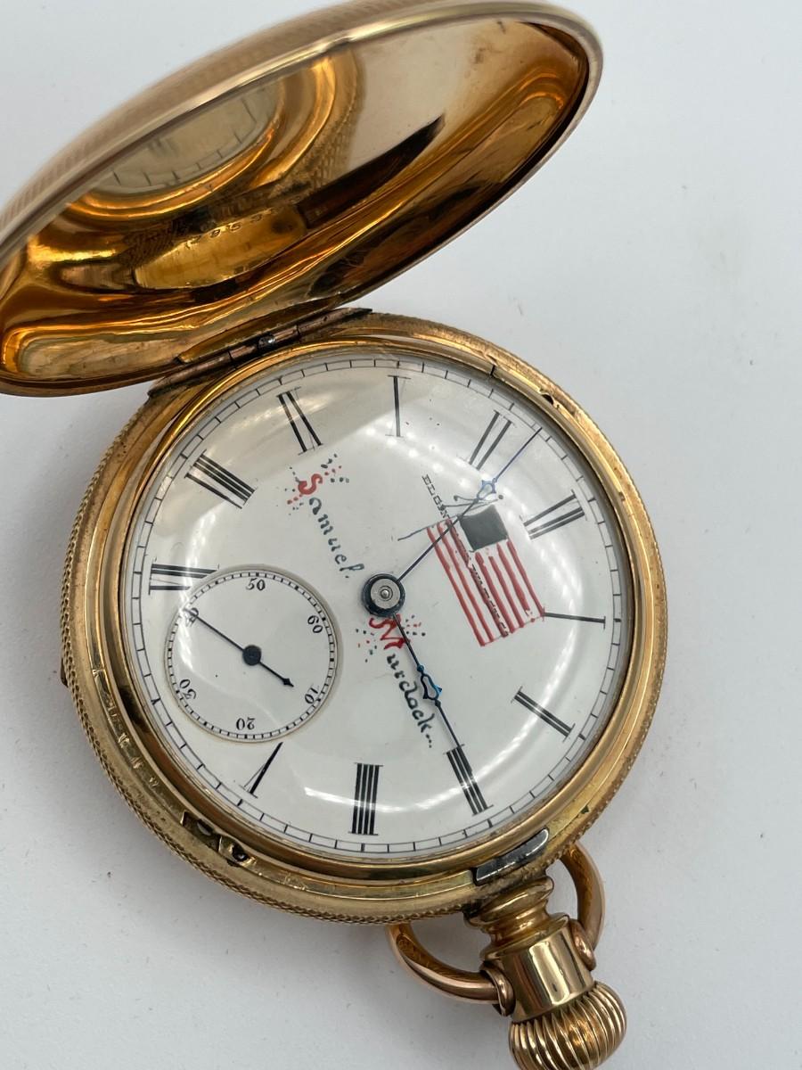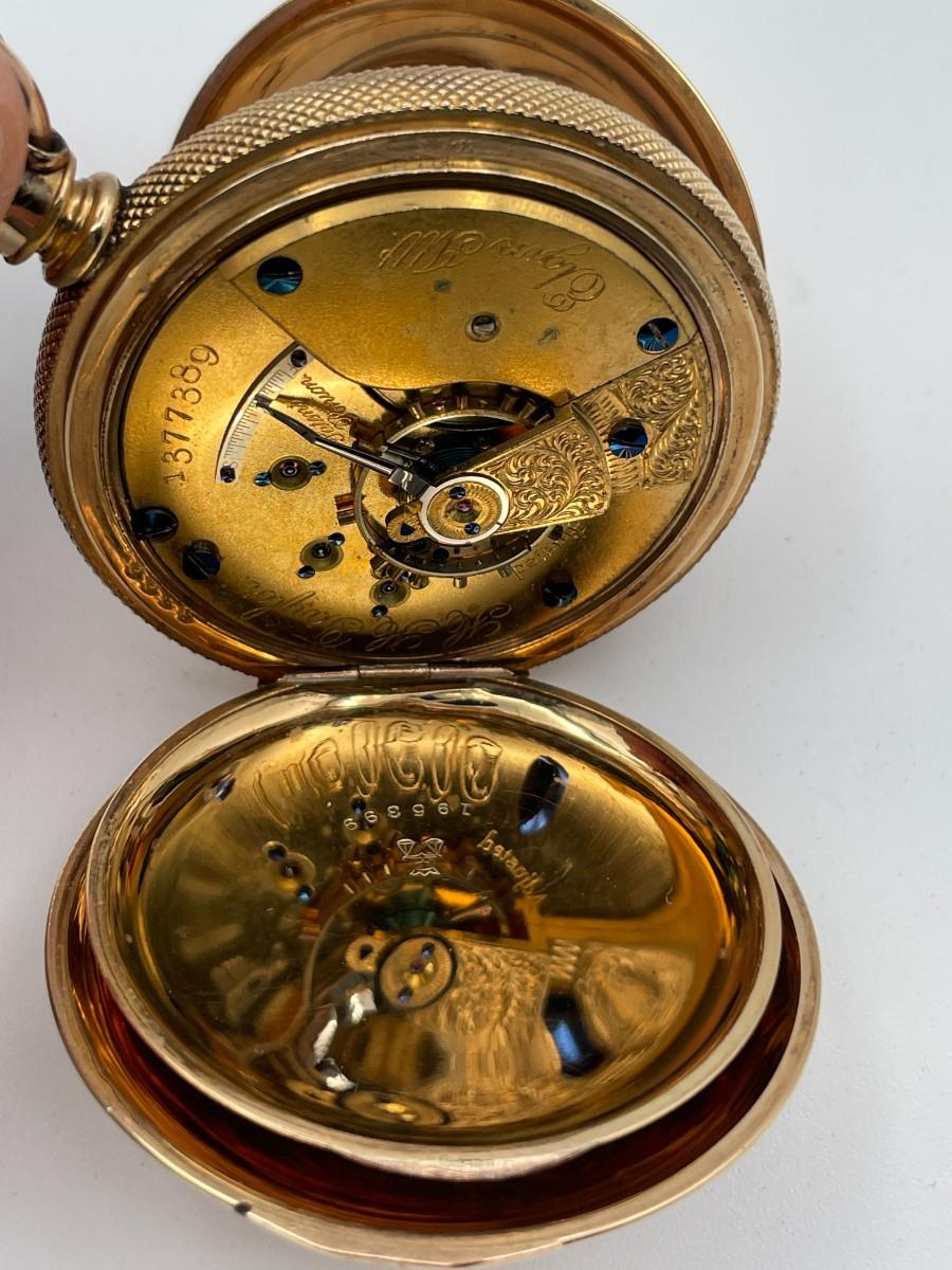 Elgin Watch Company Pocketwatch - Samuel Murdock version - Gold Tone - Watch Number (1377389), Adjusted, Size 18S, with Gold Filled(keystone) Case Number (195399). Condition - Winder works but Watch is NOT in working order. This is not a guarantee that all parts are original nor is the watch autheniticated. Estimated Value - $45 - $135 Year 1884.