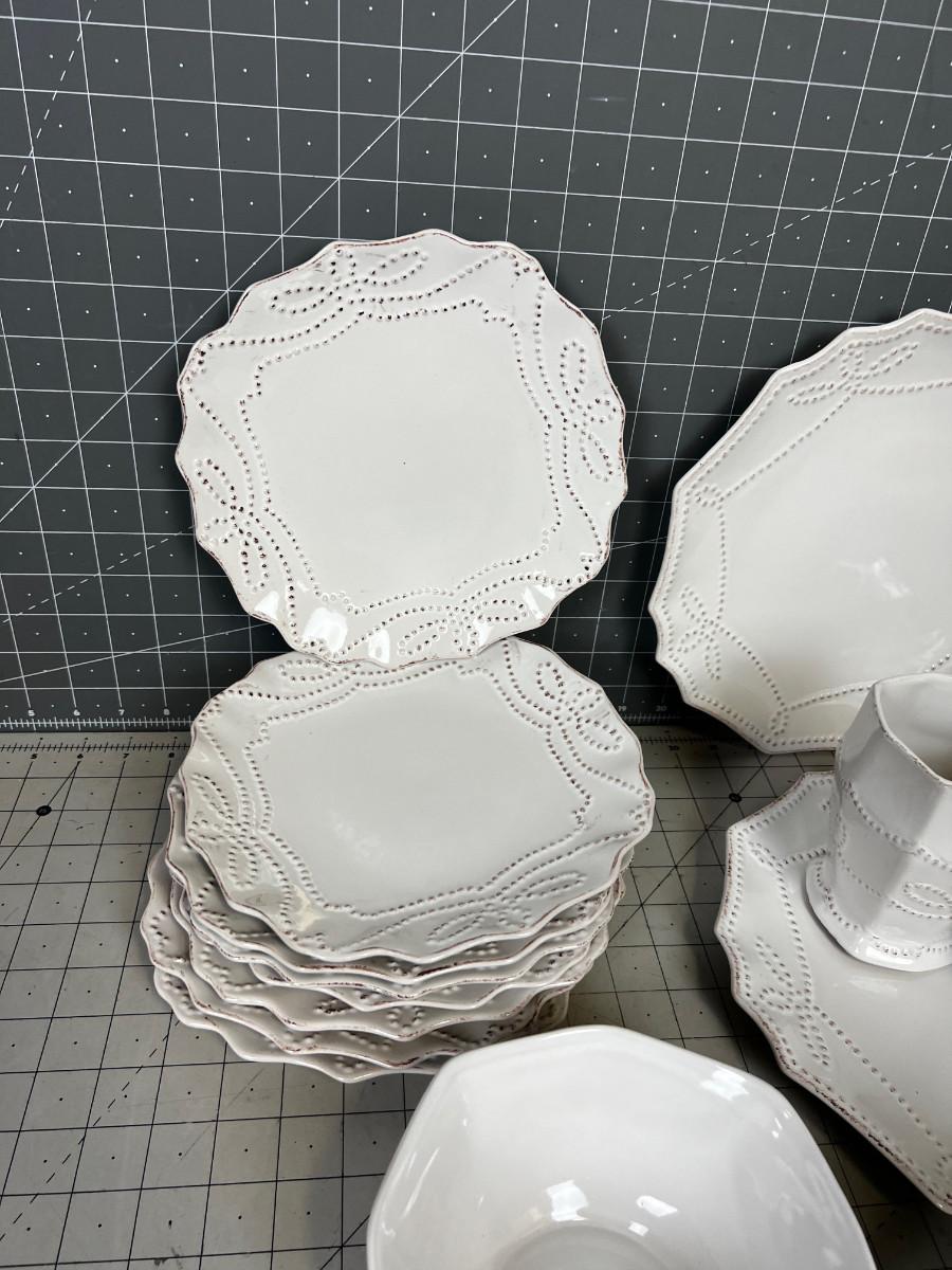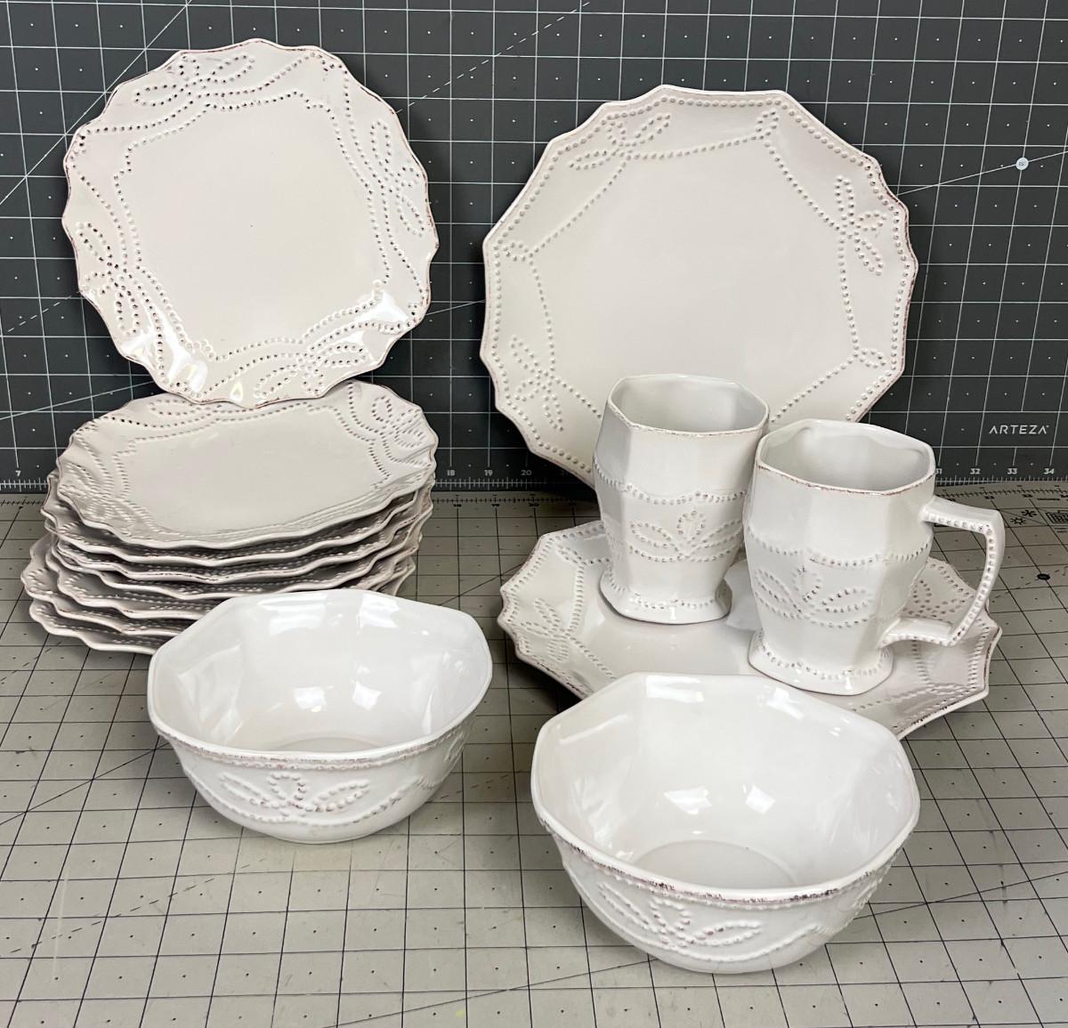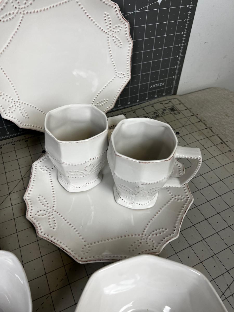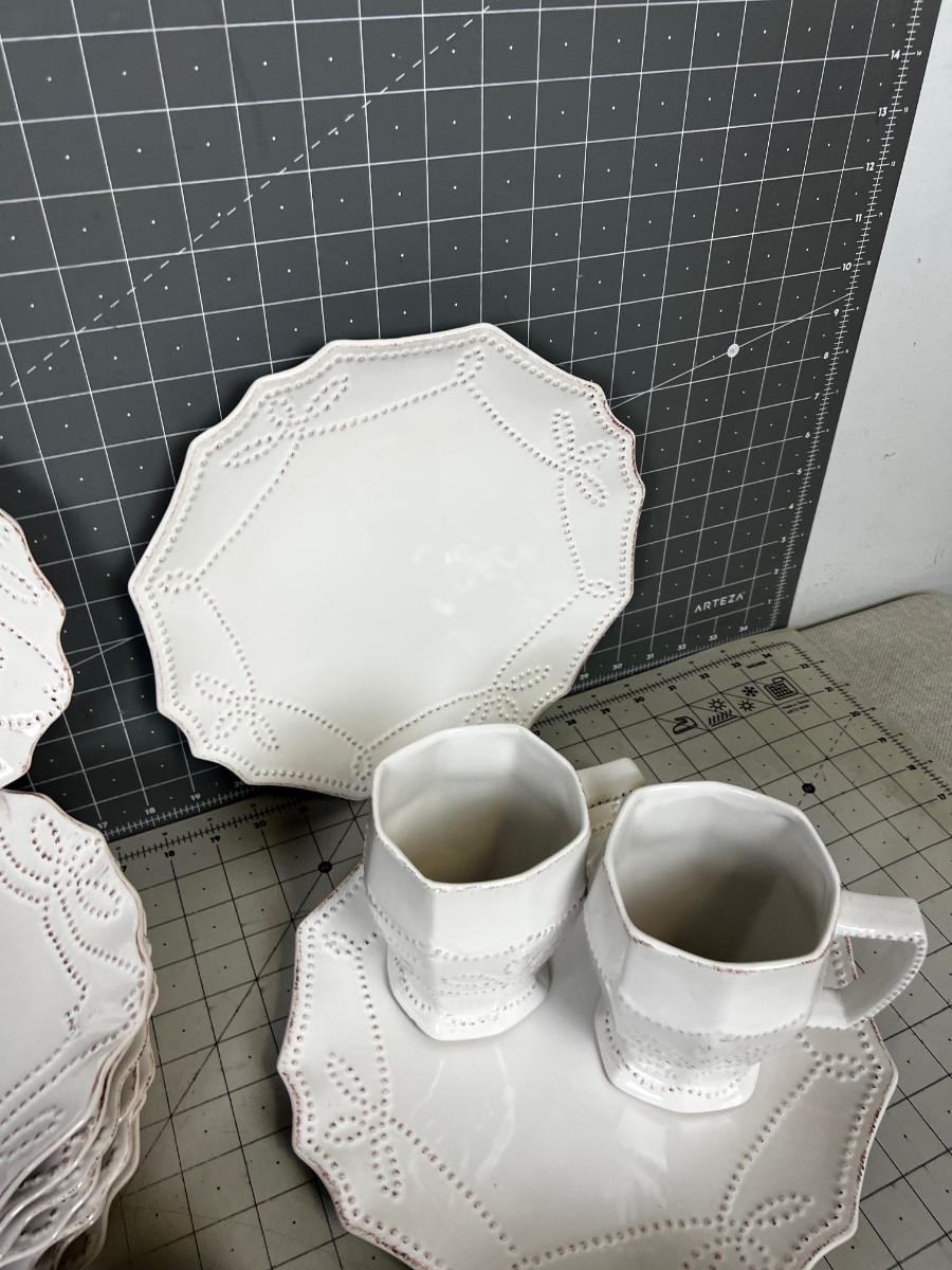 New never used. 2 Dinner, 2 Bowls, 2 cups and 8 Salad Plates.