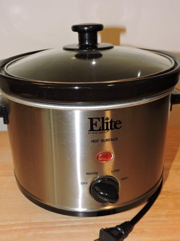 Elite Crock Pot **Please read Terms and Conditions before placing a bid. Pick up is Thursday, August 15, 2019 from 4pm to 7pm or Sunday, August 18 from 11am-2pm in Mullica Hill. All sales are final. All sales are as is, where is. Please review all photos. Any props included in photos are not included in listing. All measurements are approximate.