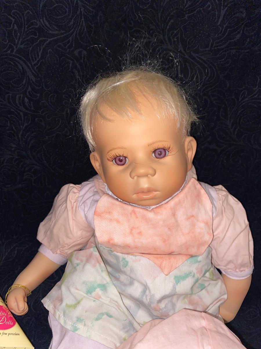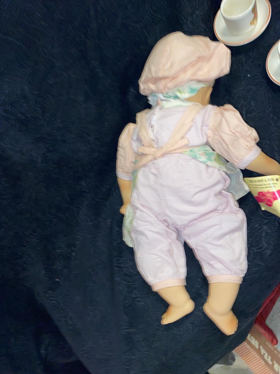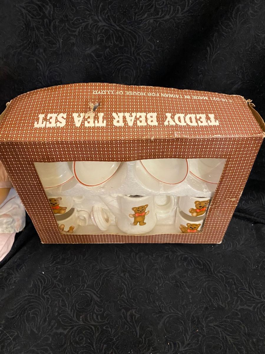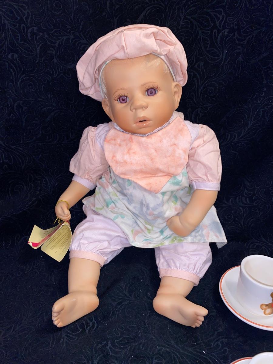 ELITE DOLLS PORCELAIN BABY ZACHARY AND TEDDY BEAR CHILD TEA SET