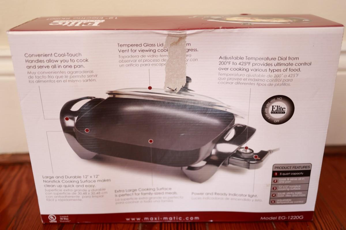 Elite Gourmet 12" Electric Skillet, model EG-1220G.