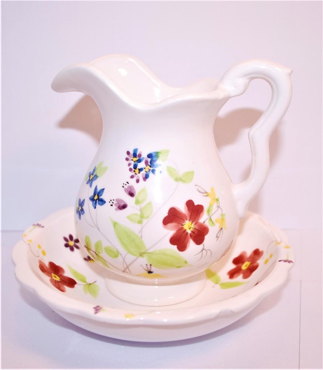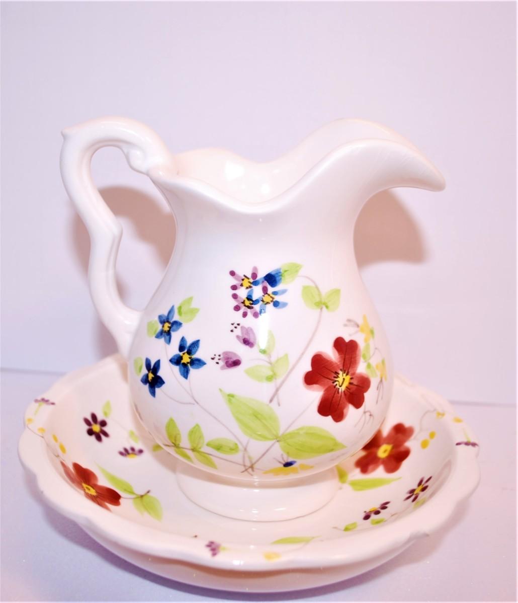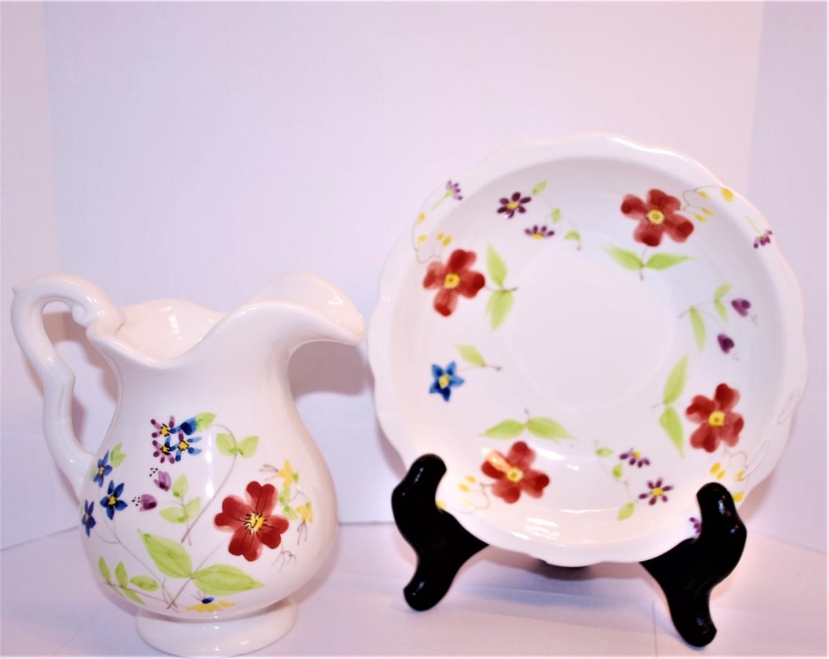 "Elizabeth Arden " Flowered Pitcher (5" H) & Matching Bowl (7" W) Set