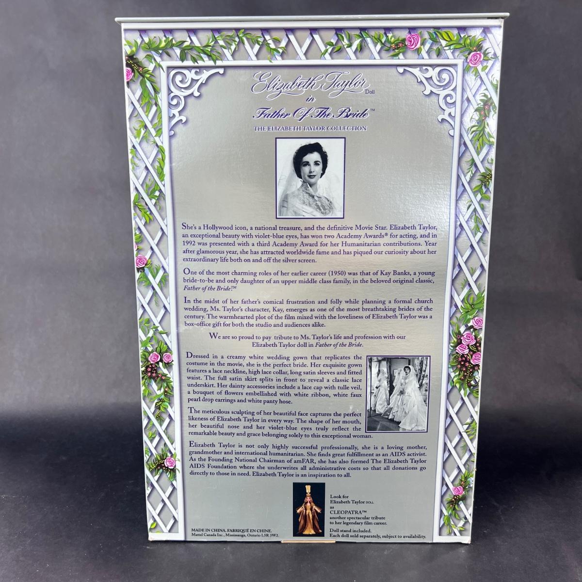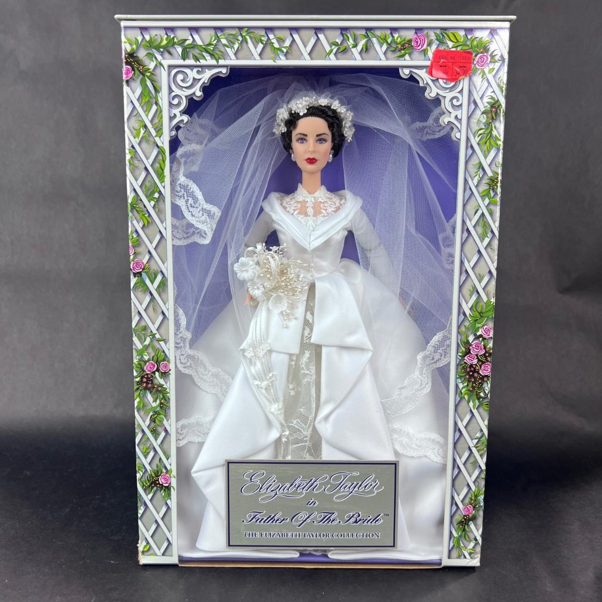 What a classic film! Here is Elizabeth Taylor, in her iconic role as Father of The Bride in the movie of the same name. Keep an eye out for Elizabeth Taylor as Cleopatra later in the auction. This doll hasn't been out of the box. **|** Please see photos for details and condition. ::: Shipping is available on this lot. If you require shipping you must let us know at the close of the auction. We will coordinate with you after the item has been won. Shipping fees will include insurance up to or exceeding the value of all items being mailed. If you have any questions regarding this lot please contact the auctioneer either via this website, by direct email or by phone. PICK UP TIMES and other important information can be found in the TERMS and DESCRIPTION of the auction. Please take a look for pertinent information. Thanks!