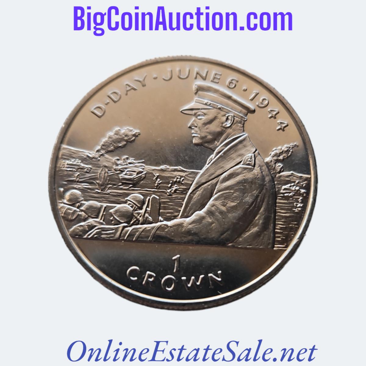 Elizabeth the 2nd Isle of Man D-Day June 6 1944 1 crown