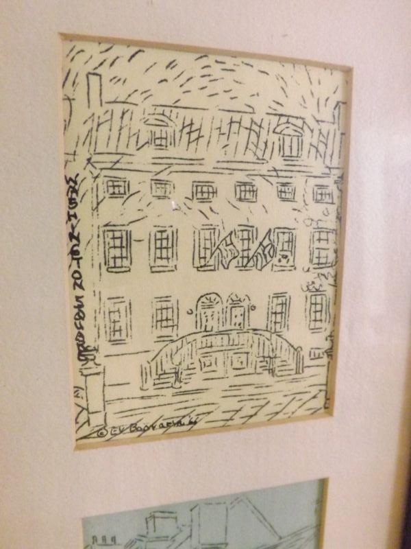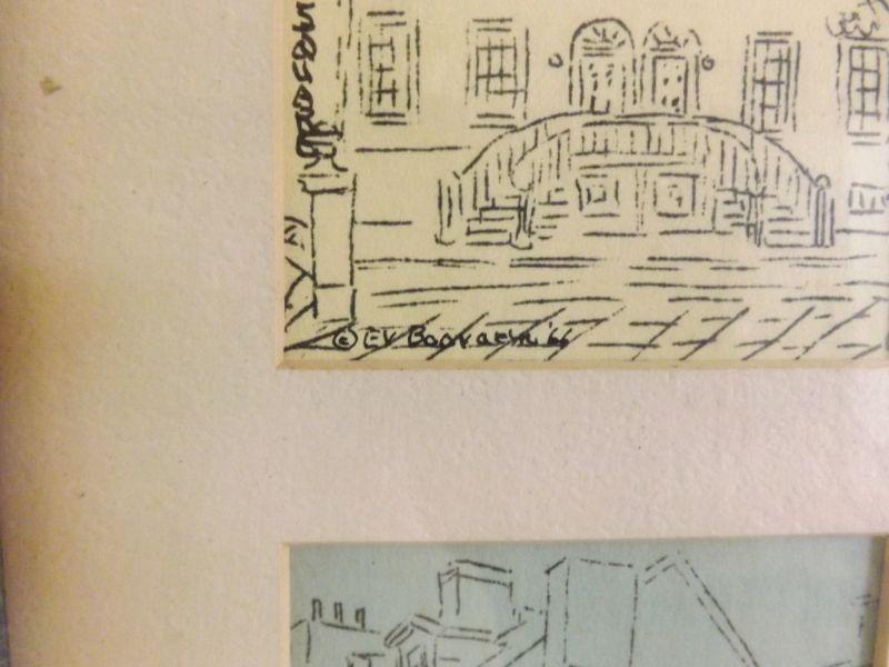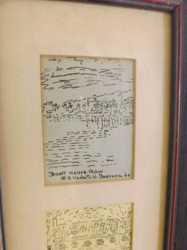 Elizabeth Vacher Booraem ink sketches from around Philadelphia, 1966 Prints-3x4" Frames-8x29" **Please read Terms and Conditions before placing a bid. Pick up is Monday or Tuesday Oct. 28 or 29th from 12p to 4p in Mantua, New Jersey. Also we will do by appointment on November 1st or 2nd.Shipping is available at buyer's expense. All sales are final. All sales are as is, where is. Please review all photos. Any props included in photos are not included in listing. All measurements are approximate.