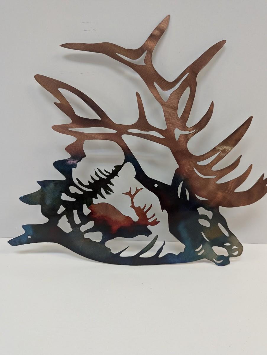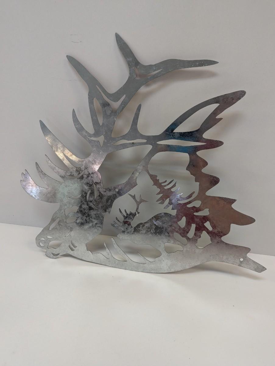 Elk Deer Retro Laser Cutting Metal Wall Art Handmade Silhouette
