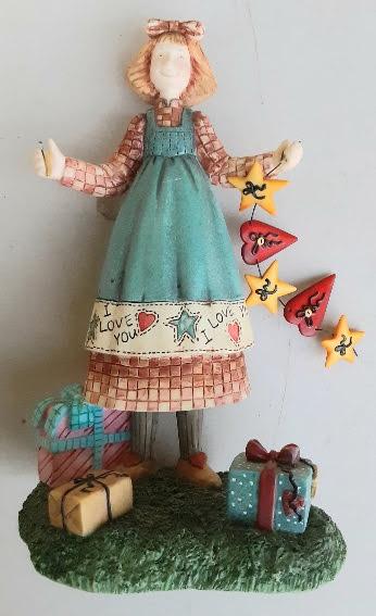 she measures 6.75in. tall. her string of hearts could be reattached to her right hand