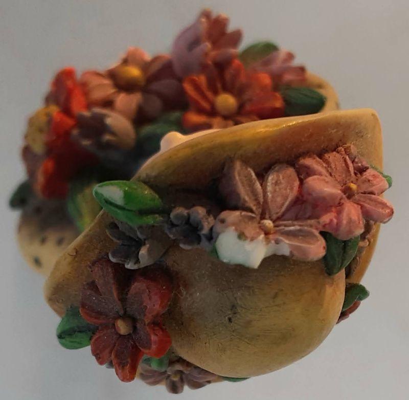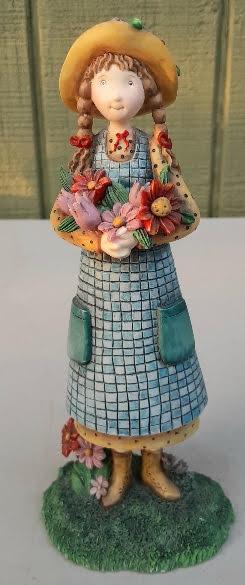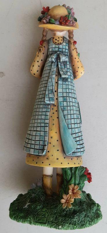 She measures 6.75in. tall and a flower petal missing in her hat as shown