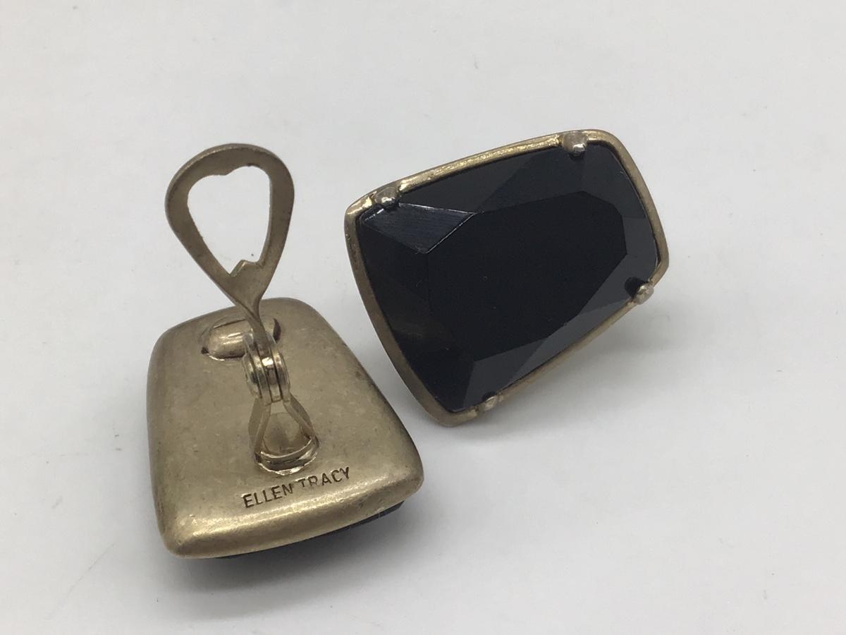Ellen Tracy Earrings Chunky 1" Cushion Cut Black Glass Stones
