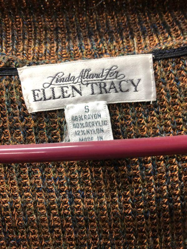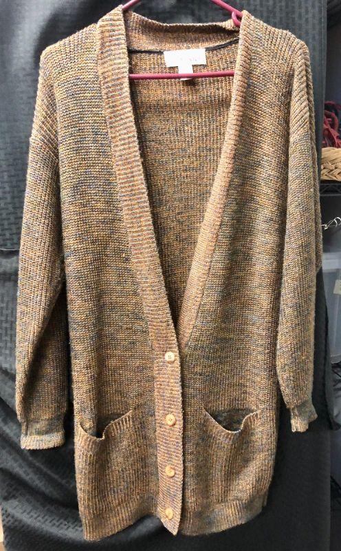 Ellen Tracy Sweater/ Cardigan, rusty brown with blue gray flecks