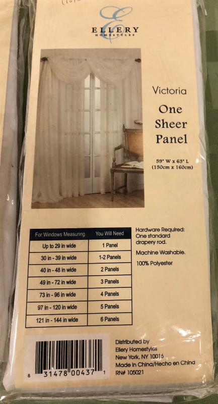 Ellery Homestyles Victoria ONE SHEER PANELS...New condition...6 packages...they each measure 59" W x 63" L
