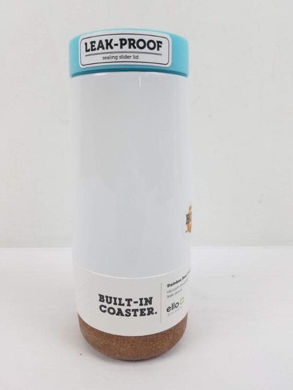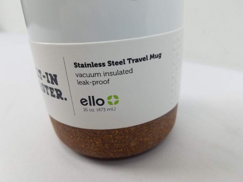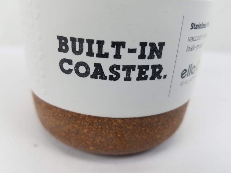 Ello Stainless Steel 16 oz Travel Mug. Vacuum Insulated Leak Proof with Built in Coaster - New