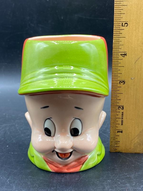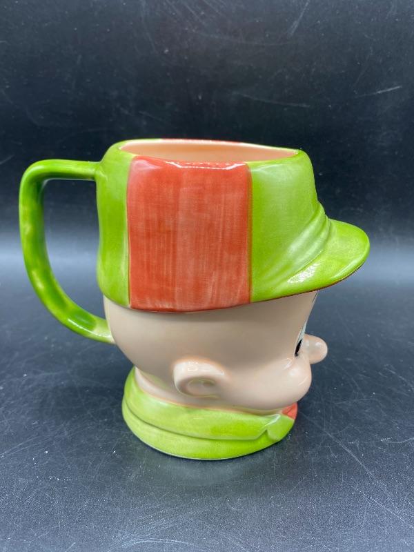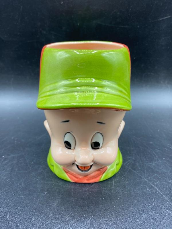 Elmer Fudd coffee cup. Unmarked, unbranded. In good condition, no chips. About 4.5" tall.