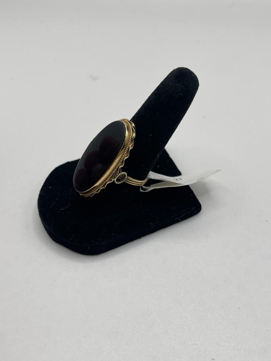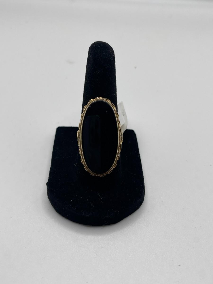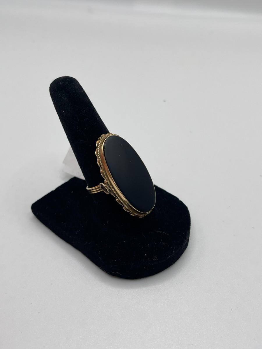 Vintage 14K yellow gold ring with elongated oval onyx. 4.96 Grams. Size 6.5