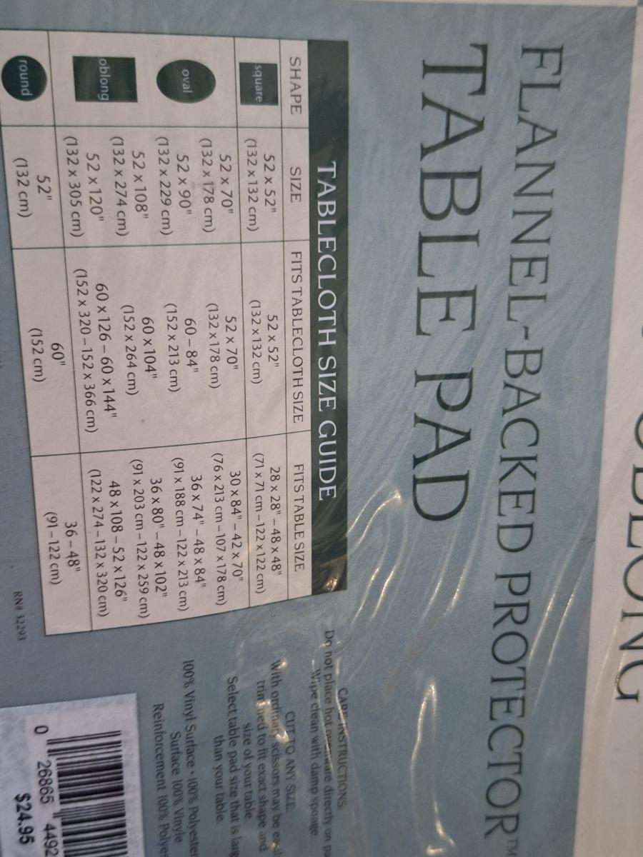 Elrene Home Fashions Flannel-Backed Protector Table Pad. For obling table