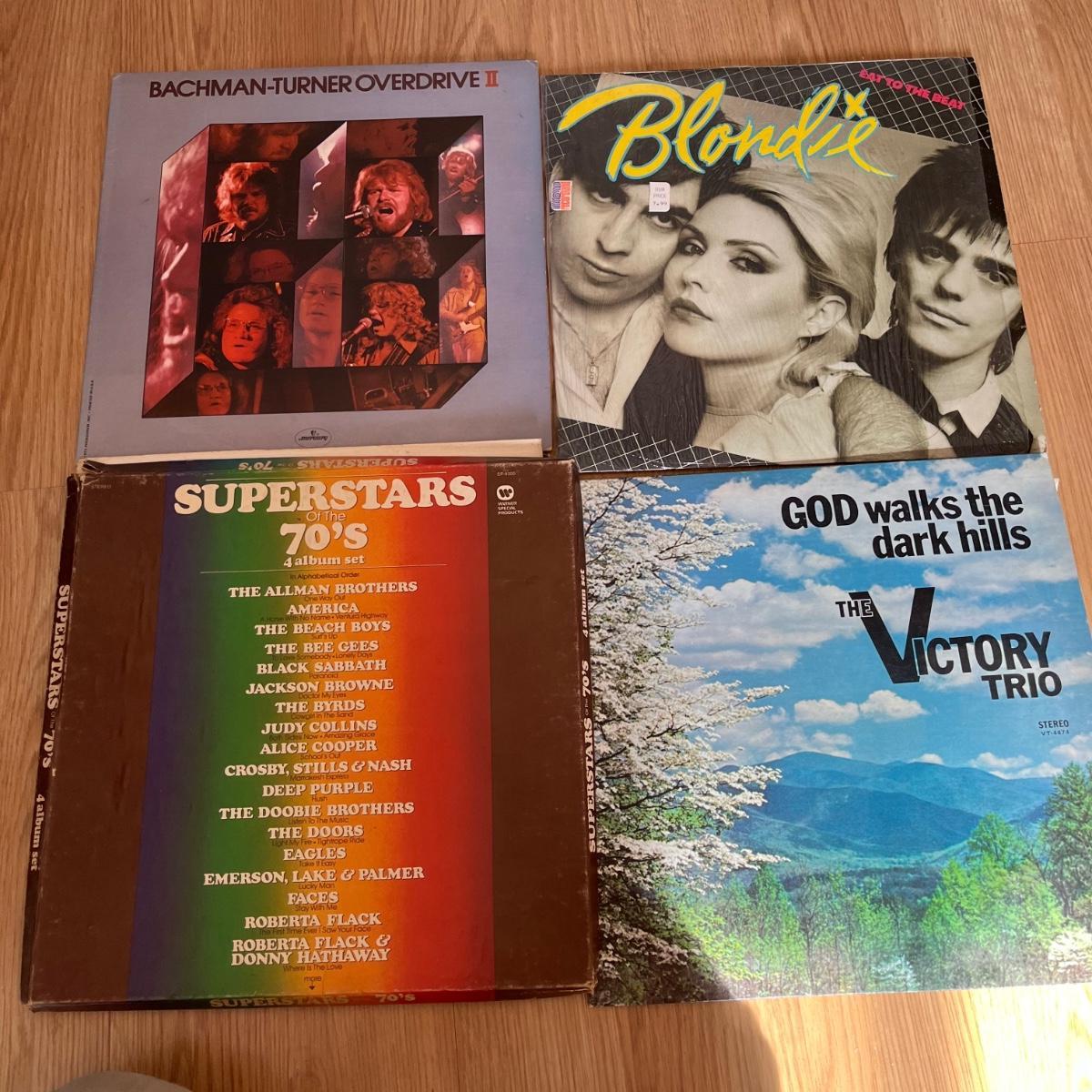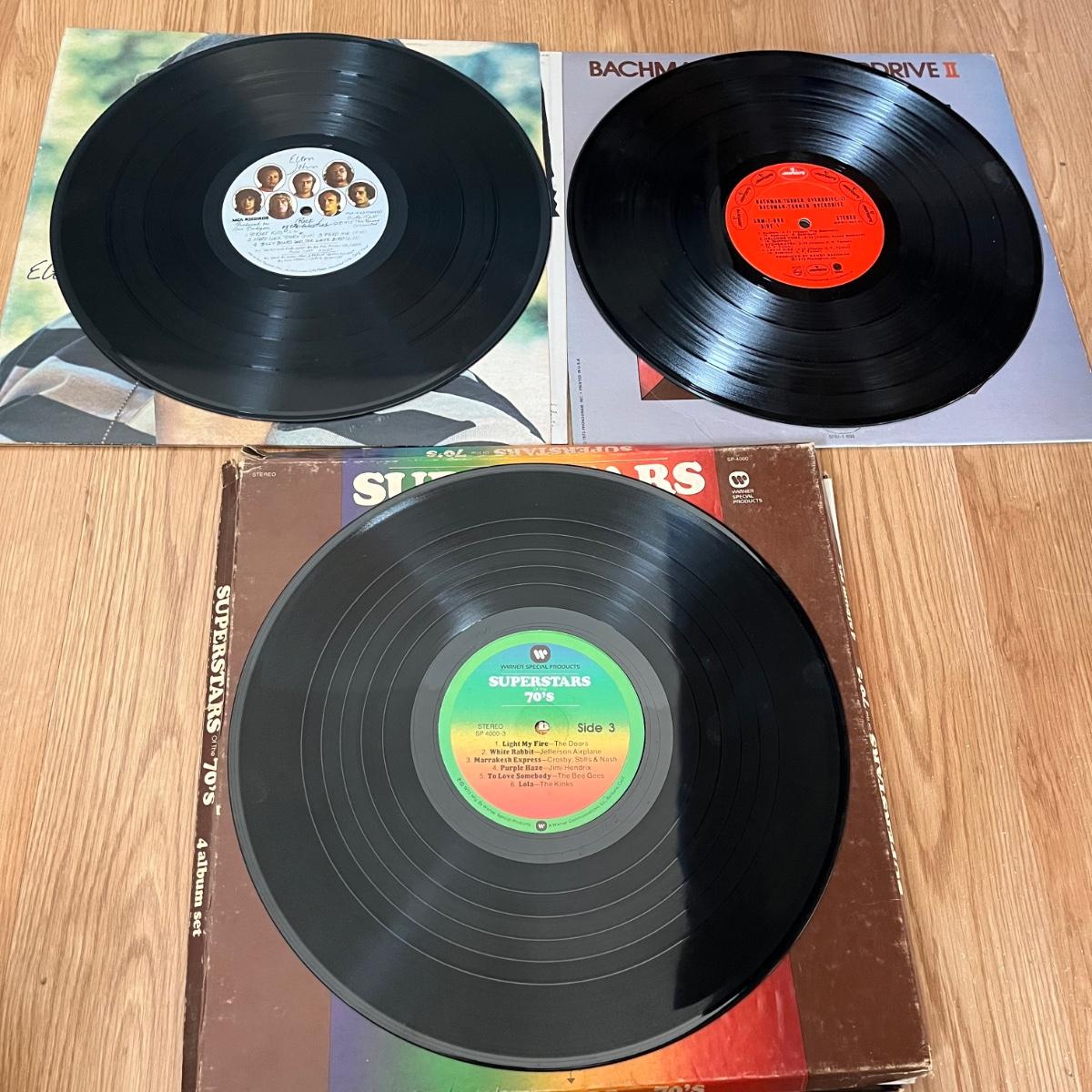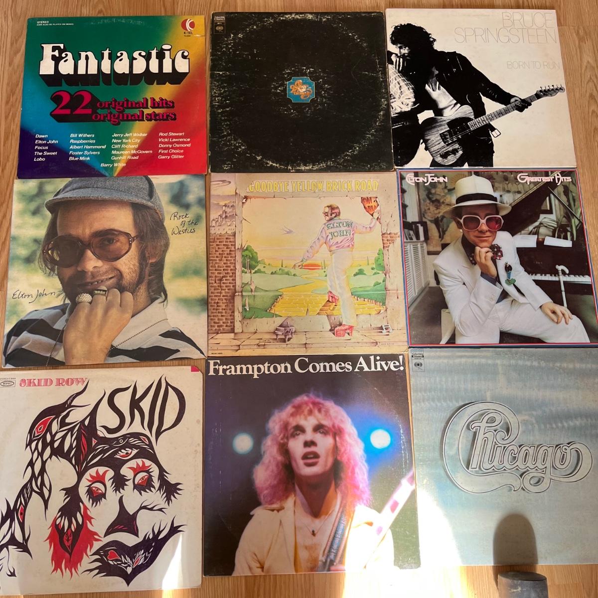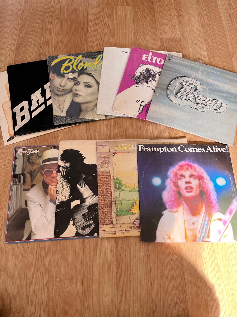 Lot includes Elton John, Bad Company, Blondie, BTO, ELO, Chicago, Jim Croce, Frampton Comes Alive and more. Records appear to be in good shape with some minor scratching, but we did not look at every one.
