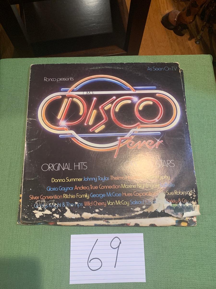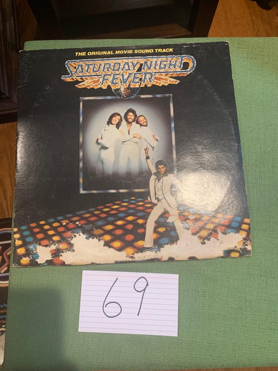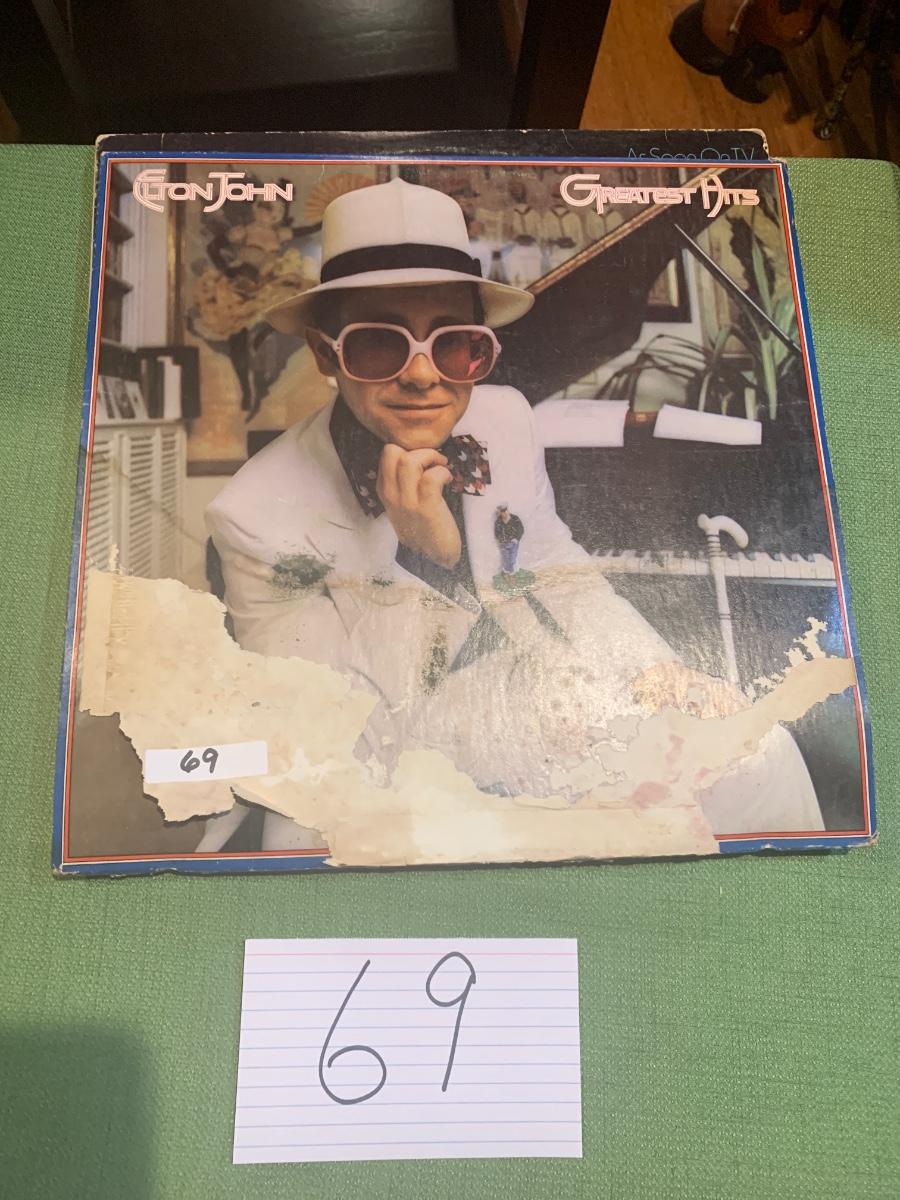 3 great original albums“”Elton John, Saturday Night Fever, and disco hits. Various cover damage; playable vinyl.