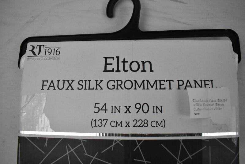 Elton Metallic Faux Silk 54 x 90 in. Grommet Single Curtain Panel in White - New