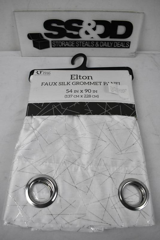 Elton Metallic Faux Silk 54 x 90 in. Grommet Single Curtain Panel in White - New