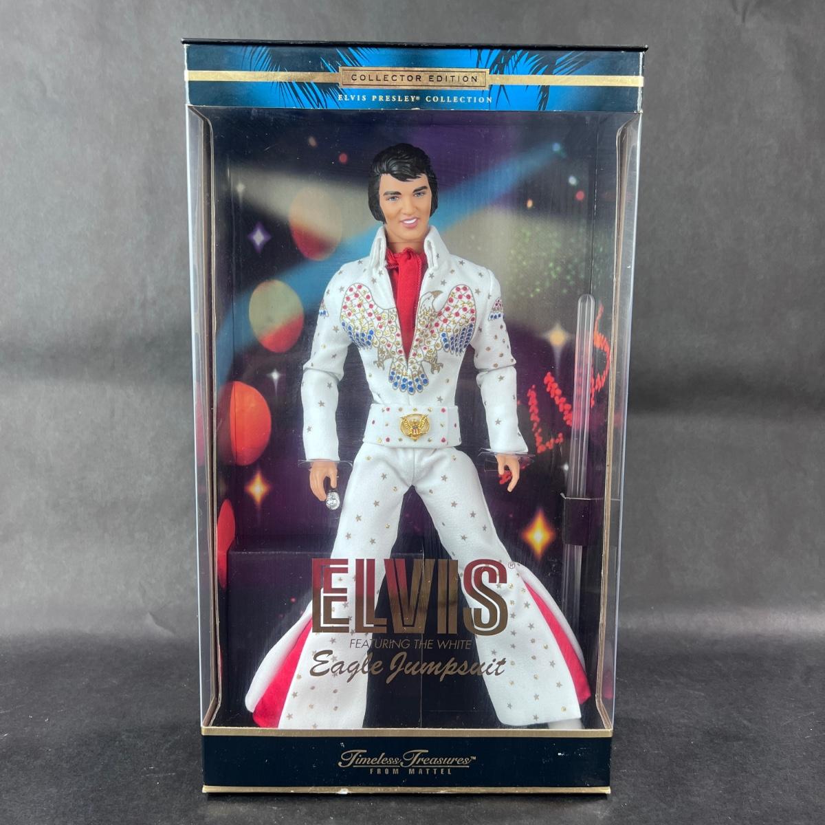 Here's Elvis in his iconic White Eagle Jumpsuit. What a great concert. This doll was produced by Mattel in 2000. This doll is part of the Elvis Presley Collection as well as the Timeless Treasures Collection. This doll has not been out of its box. **|** Please see photos for details and condition. ::: Shipping is available on this lot. If you require shipping you must let us know at the close of the auction. We will coordinate with you after the item has been won. Shipping fees will include insurance up to or exceeding the value of all items being mailed. If you have any questions regarding this lot please contact the auctioneer either via this website, by direct email or by phone. PICK UP TIMES and other important information can be found in the TERMS and DESCRIPTION of the auction. Please take a look for pertinent information. Thanks!