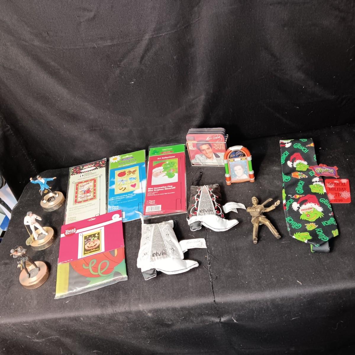 ELVIS ORNAMENTS & COASTERS, YARD FLAGS & GRINCH NECKTIE